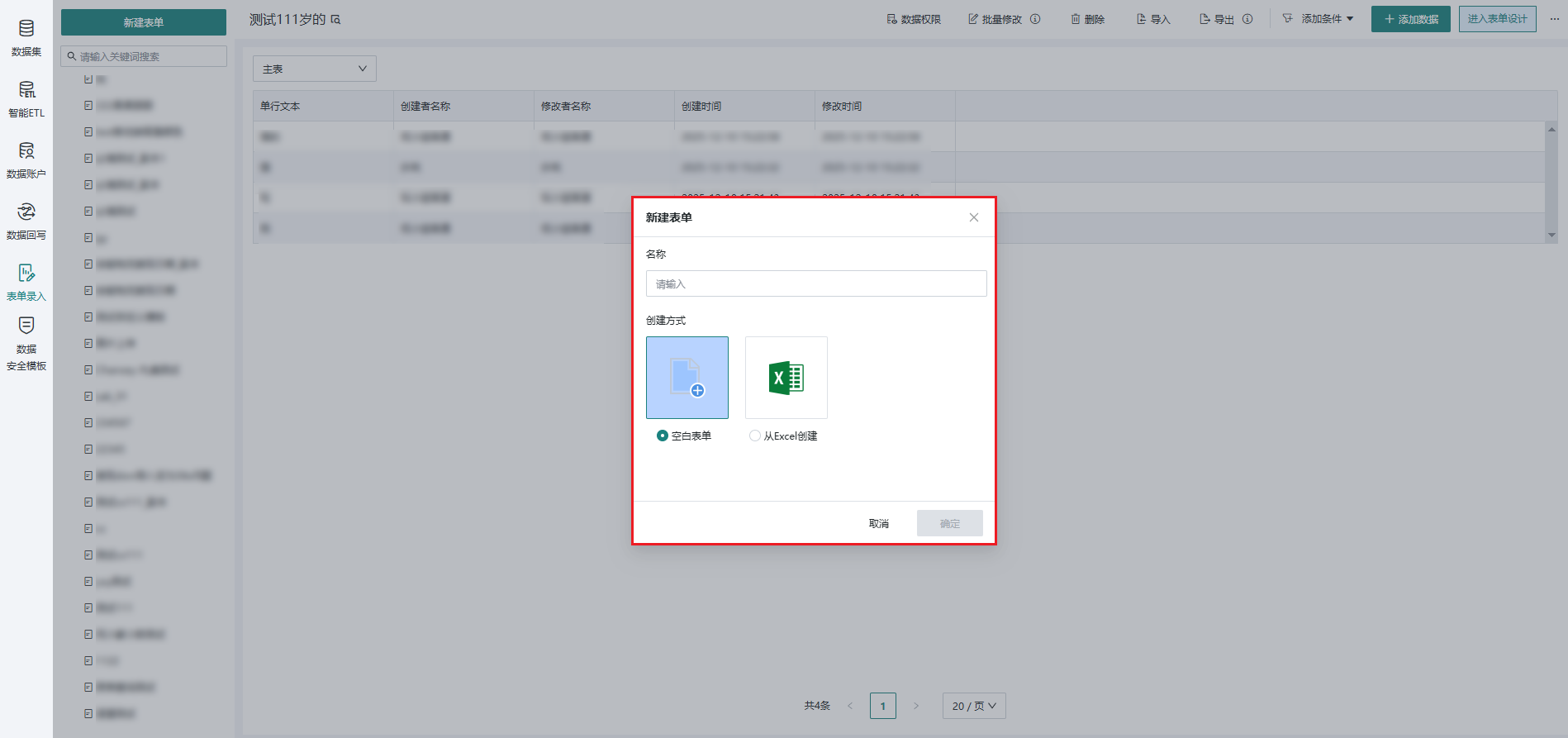 点击「数据准备 > 表单录入 > 新建表单」 。