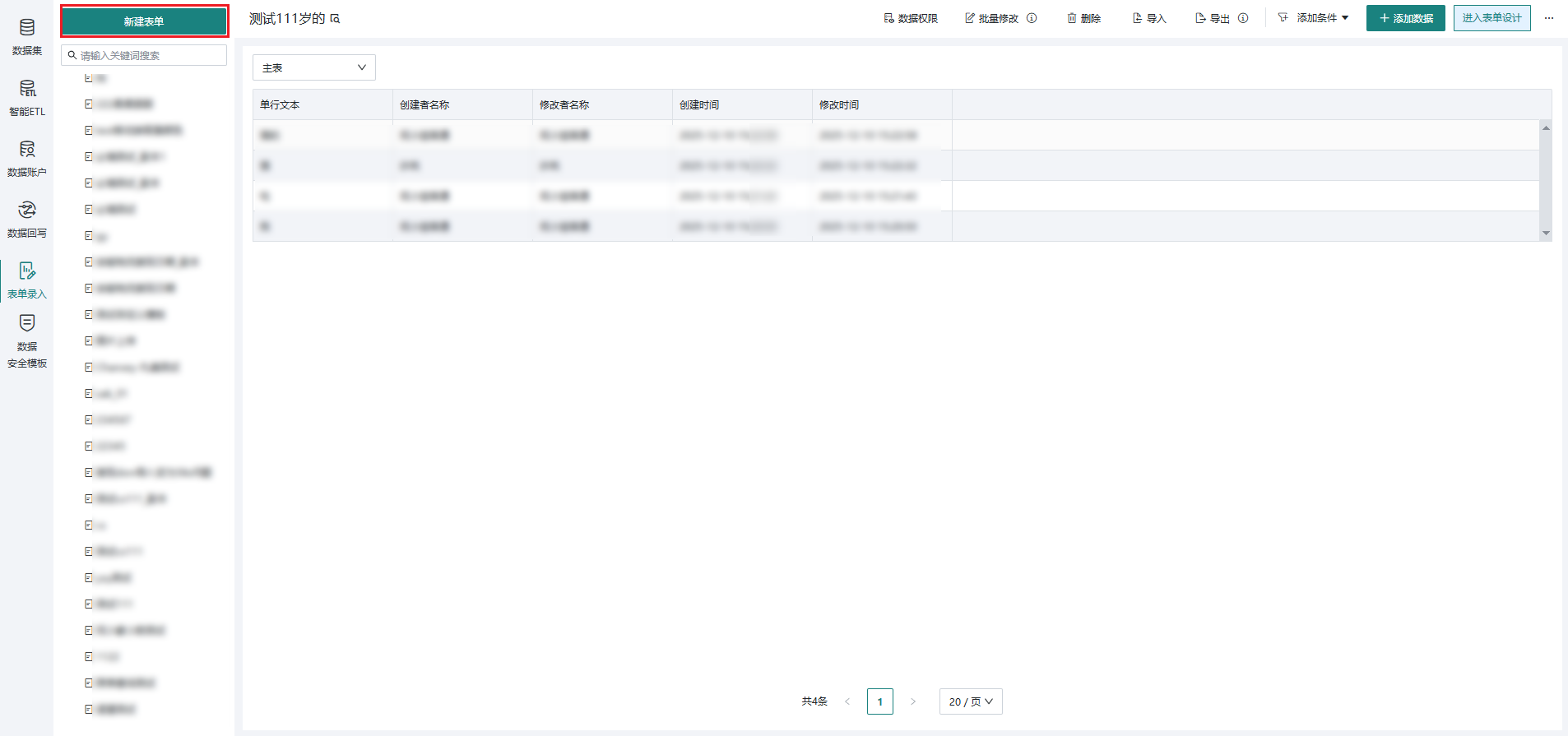 完成表单发布之后,用户可配置表单的数据权限,详情请参阅表单录入-数据管理。