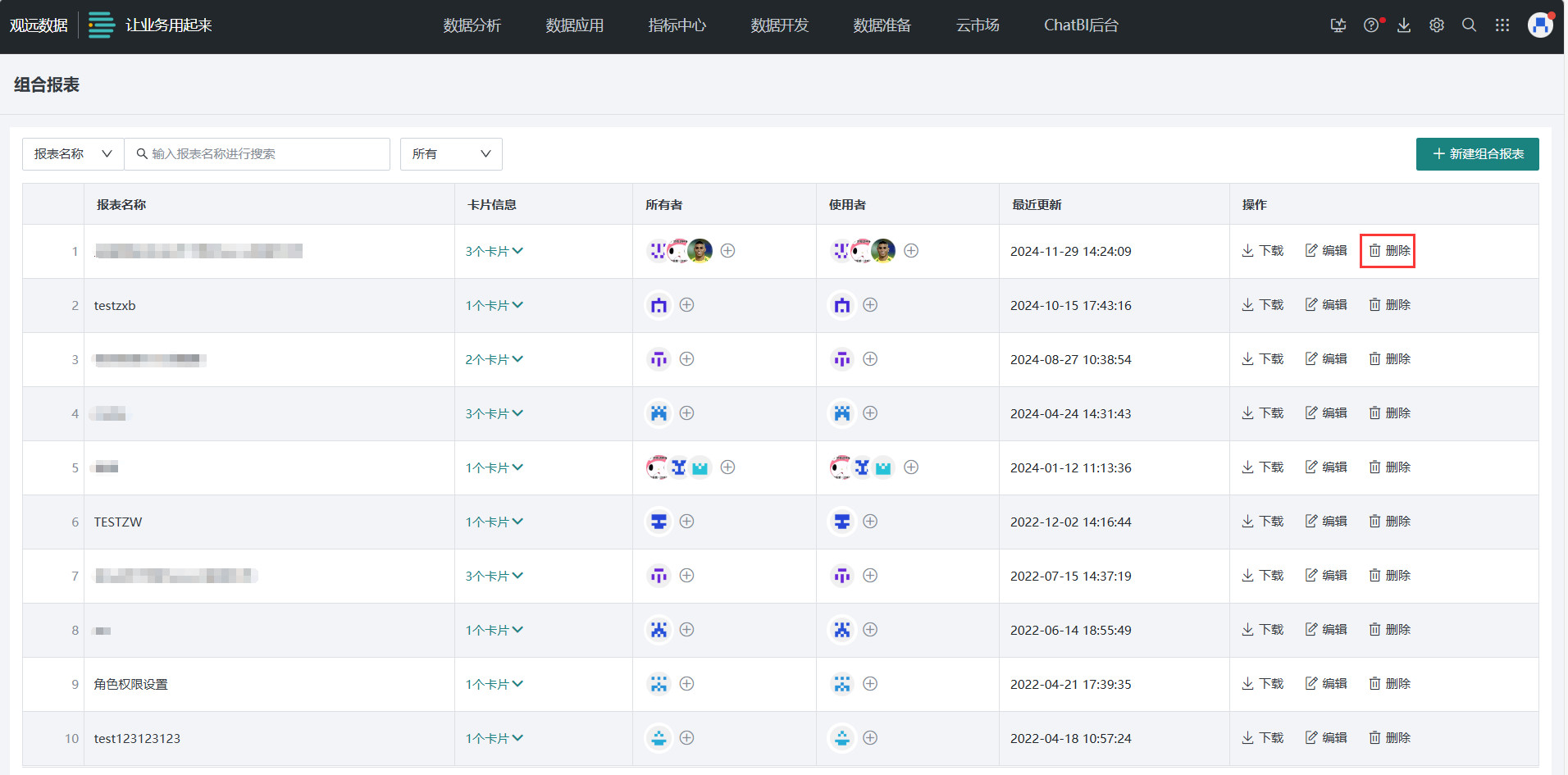 删除:若组合报表已无使用需求,可直接删除该组合报表。