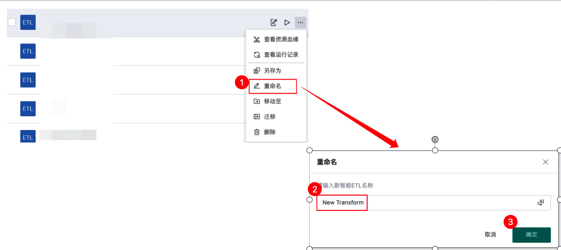 | 重命名 | 修改 ETL 任务的名称,用于更好地反映任务的用途、内容或业务场景。 |