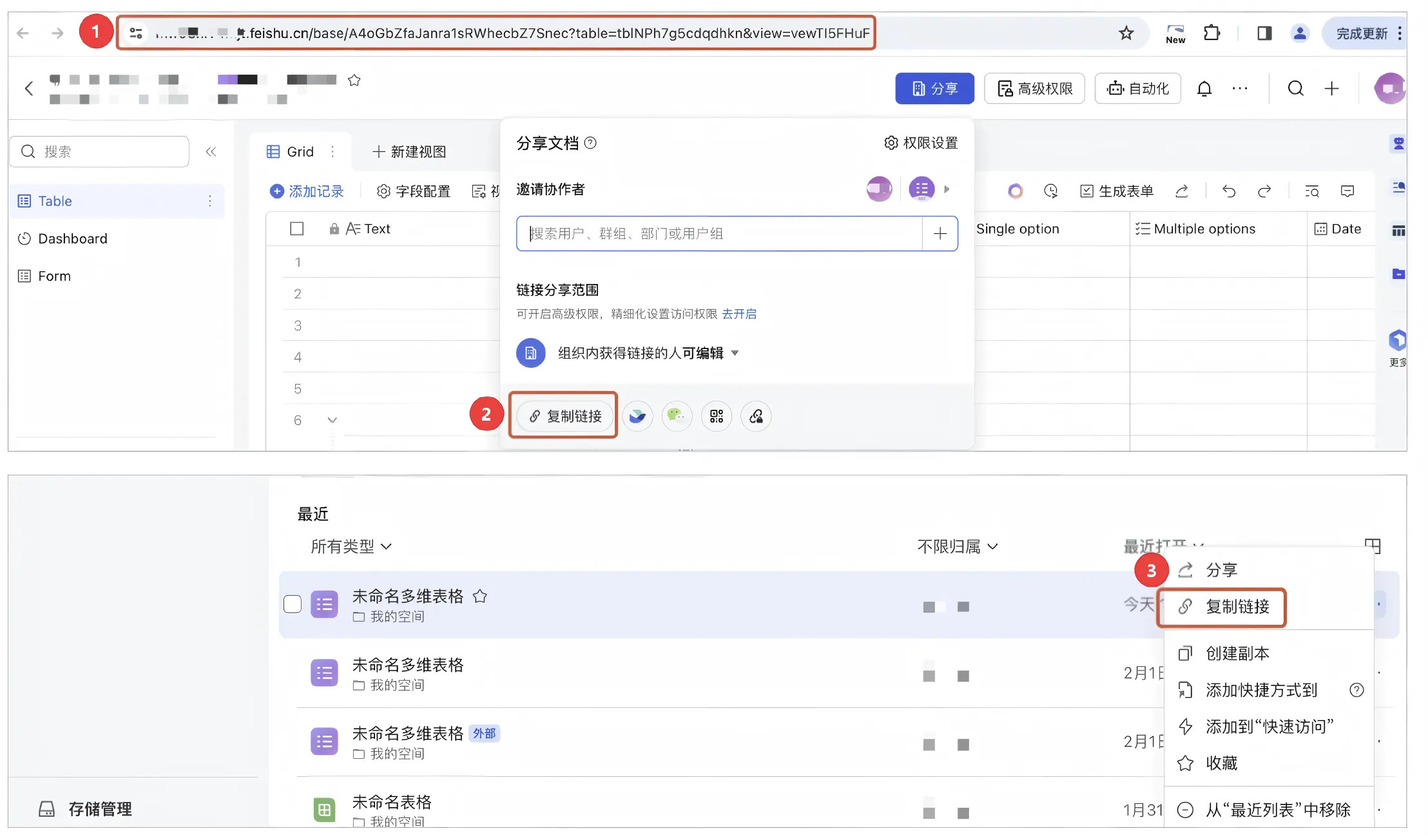 可以在这三处复制飞书表格链接。