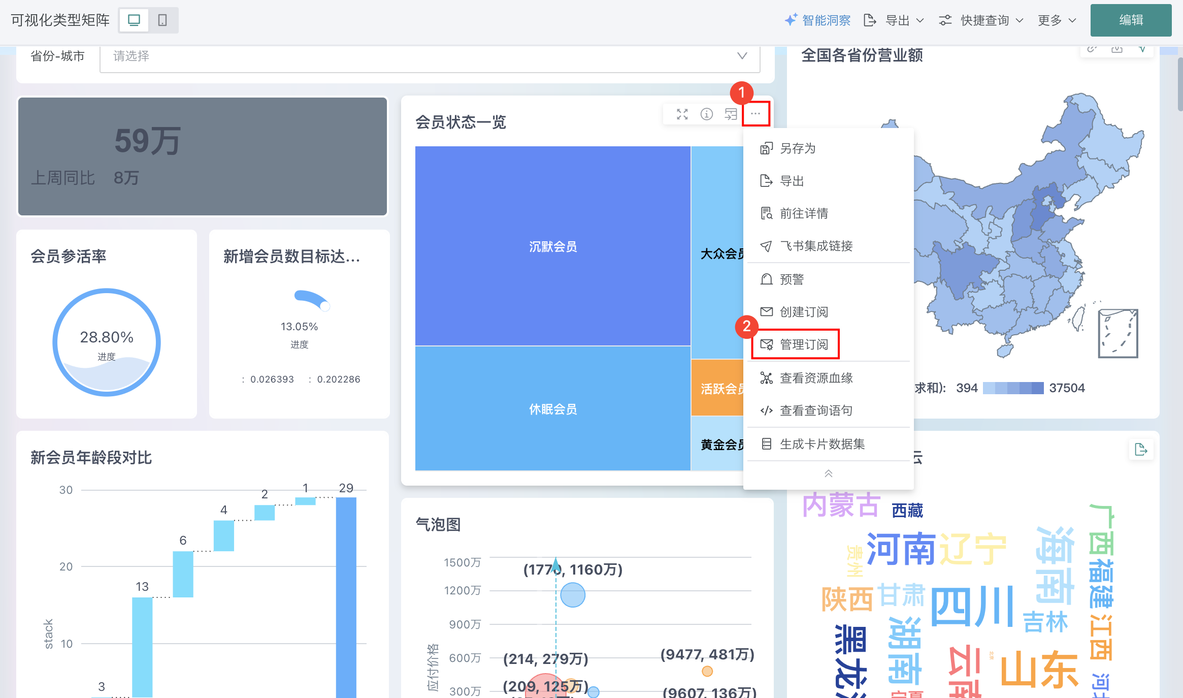 通过订阅,可以不用登录也能知道卡片或者数据集的最新数据变动。目前观远支持5种订阅: