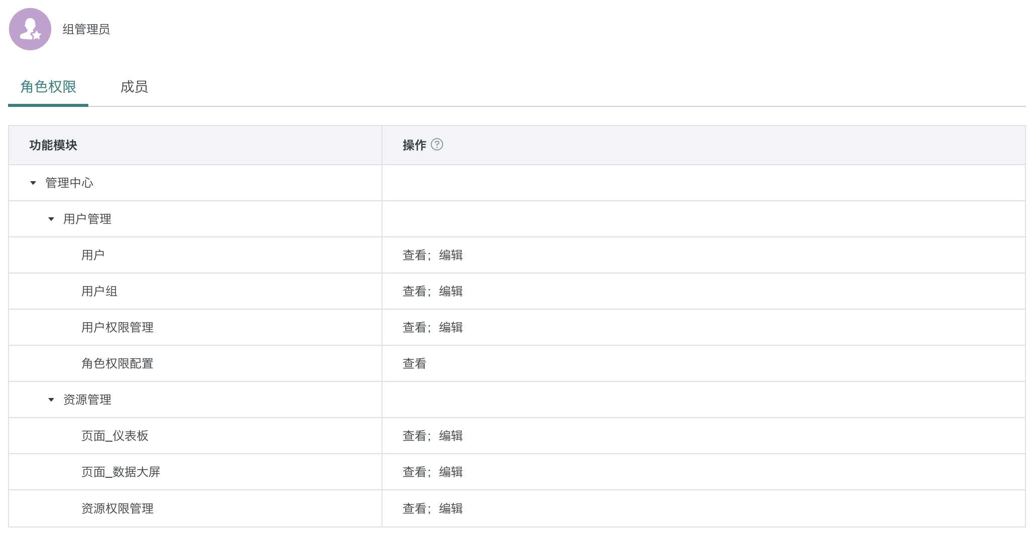 组管理员只能看到管理员给自己授权的角色,不可修改。