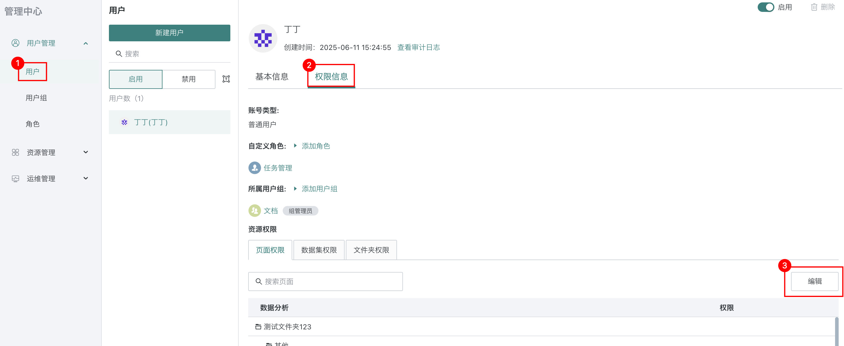 「资源权限管理」中,可以看到自己有权限的资源,并进行编辑操作。
