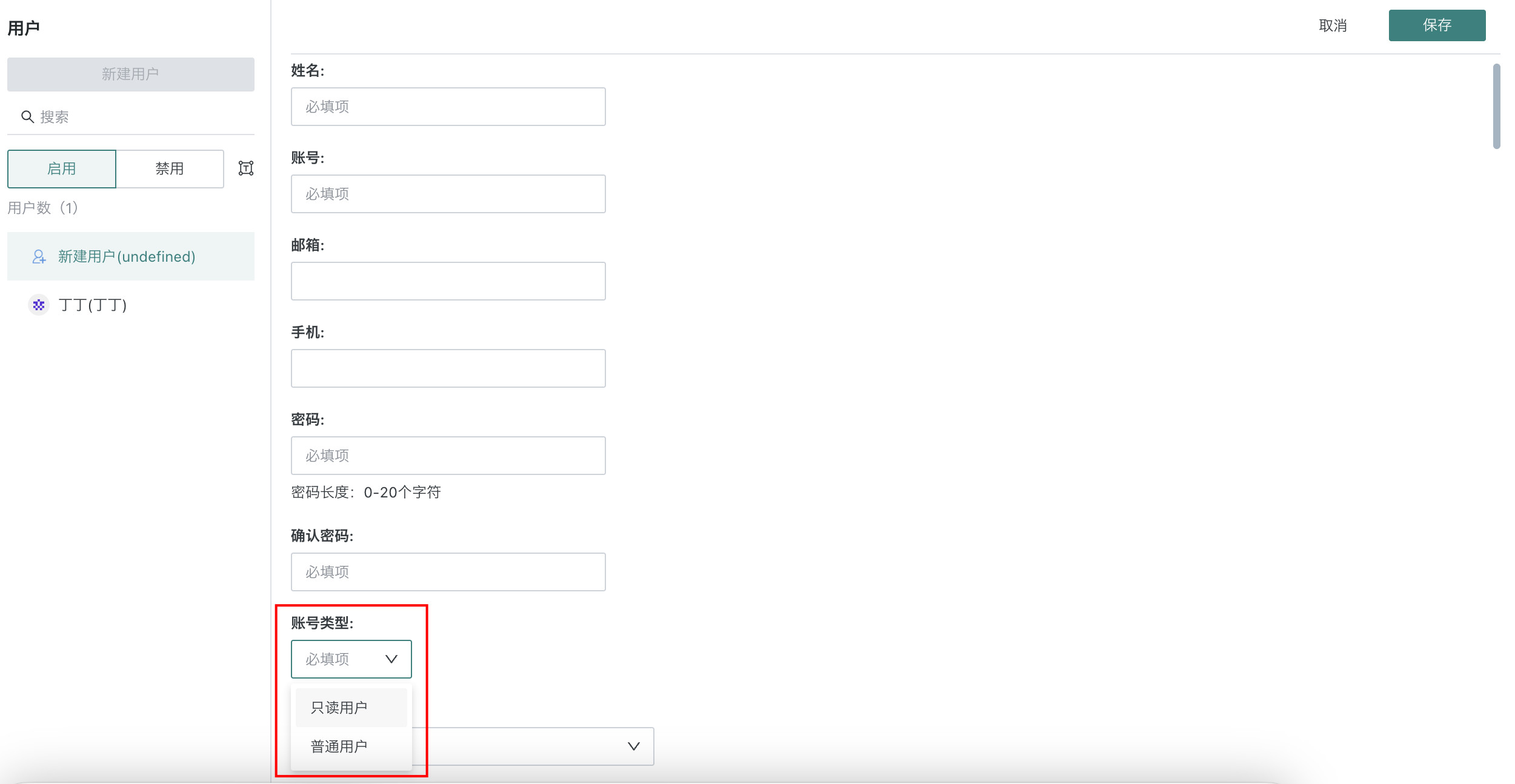 说明组管理员仅可创建只读用户/普通用户,不可创建管理员账户。