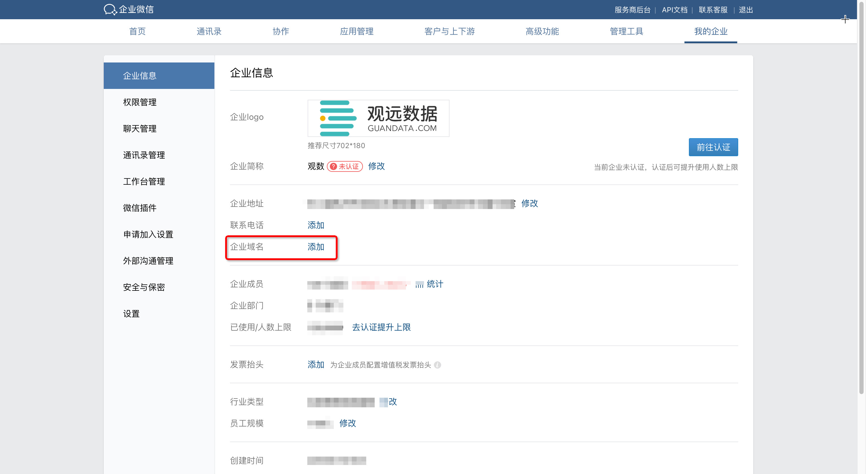 如为关联企业域名,则需联系企业微信侧完成关联企业认证。