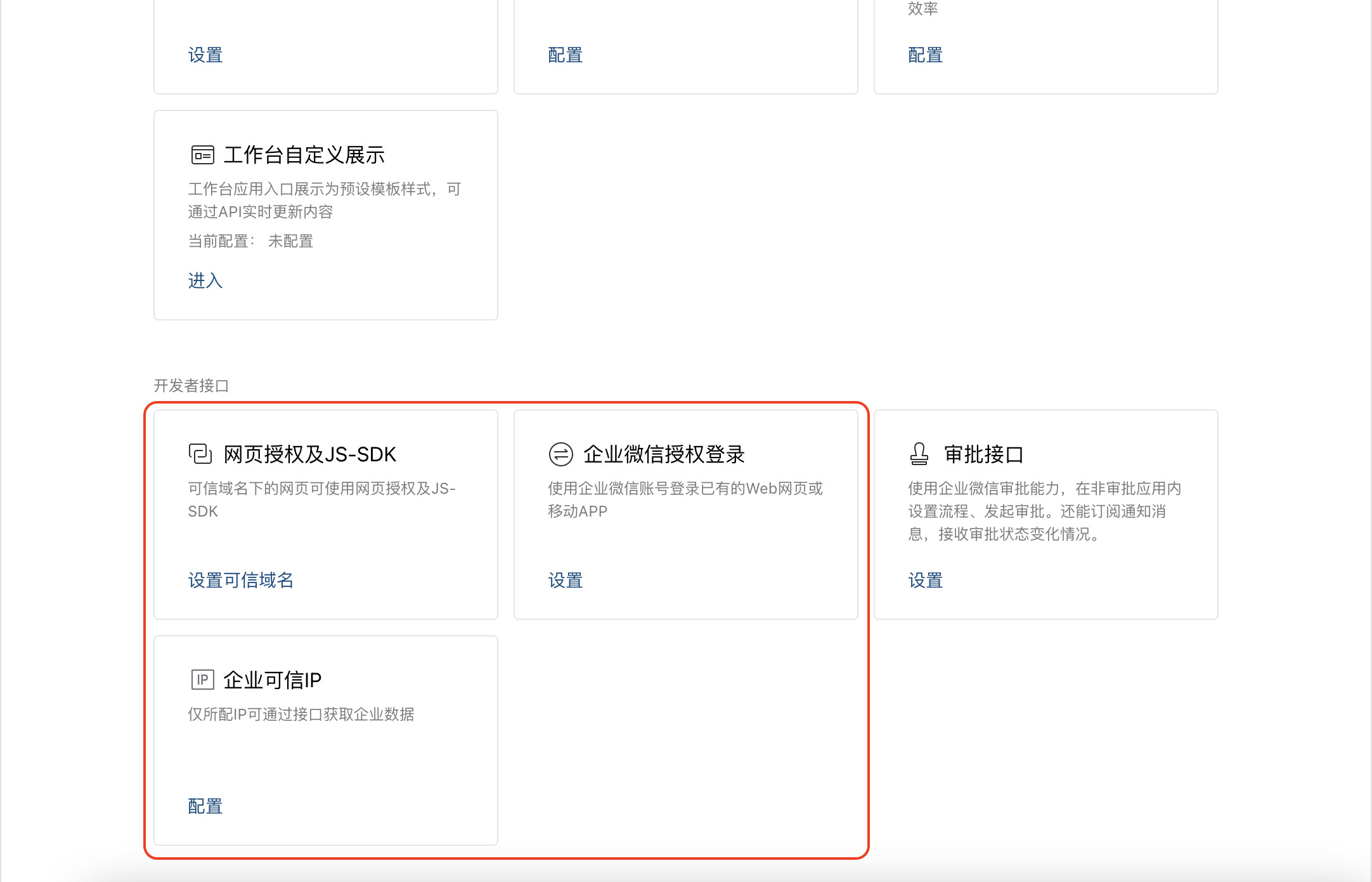 同时可获取回调域名以及应用主页链接,用于下一步在企业微信后台进行微应用配置。