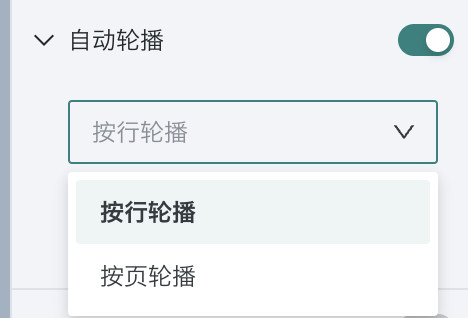 针对表格类型的卡片,支持选择轮播方式与调整轮播时间,方便用户根据数据长度灵活调整轮播速度。