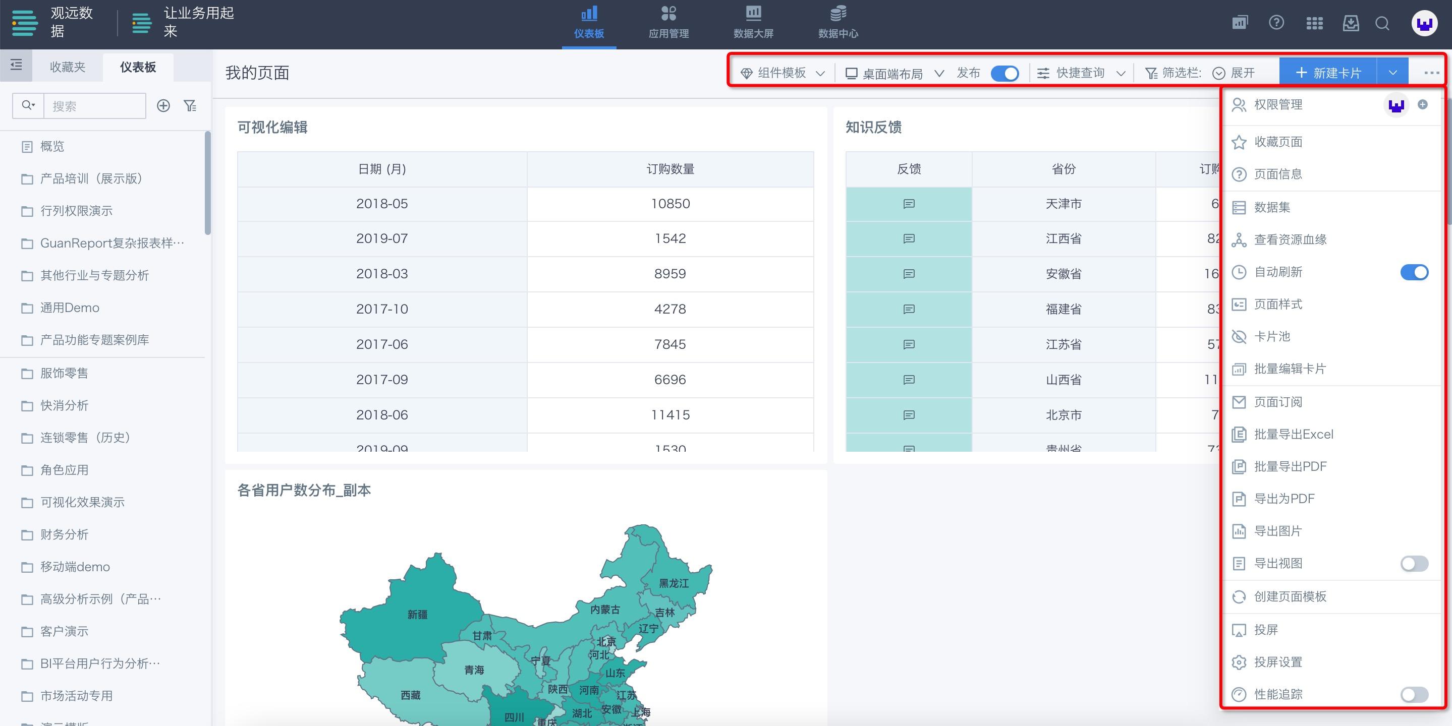- 观远平台支持两种展示终端:桌面端(PC端)和移动端。