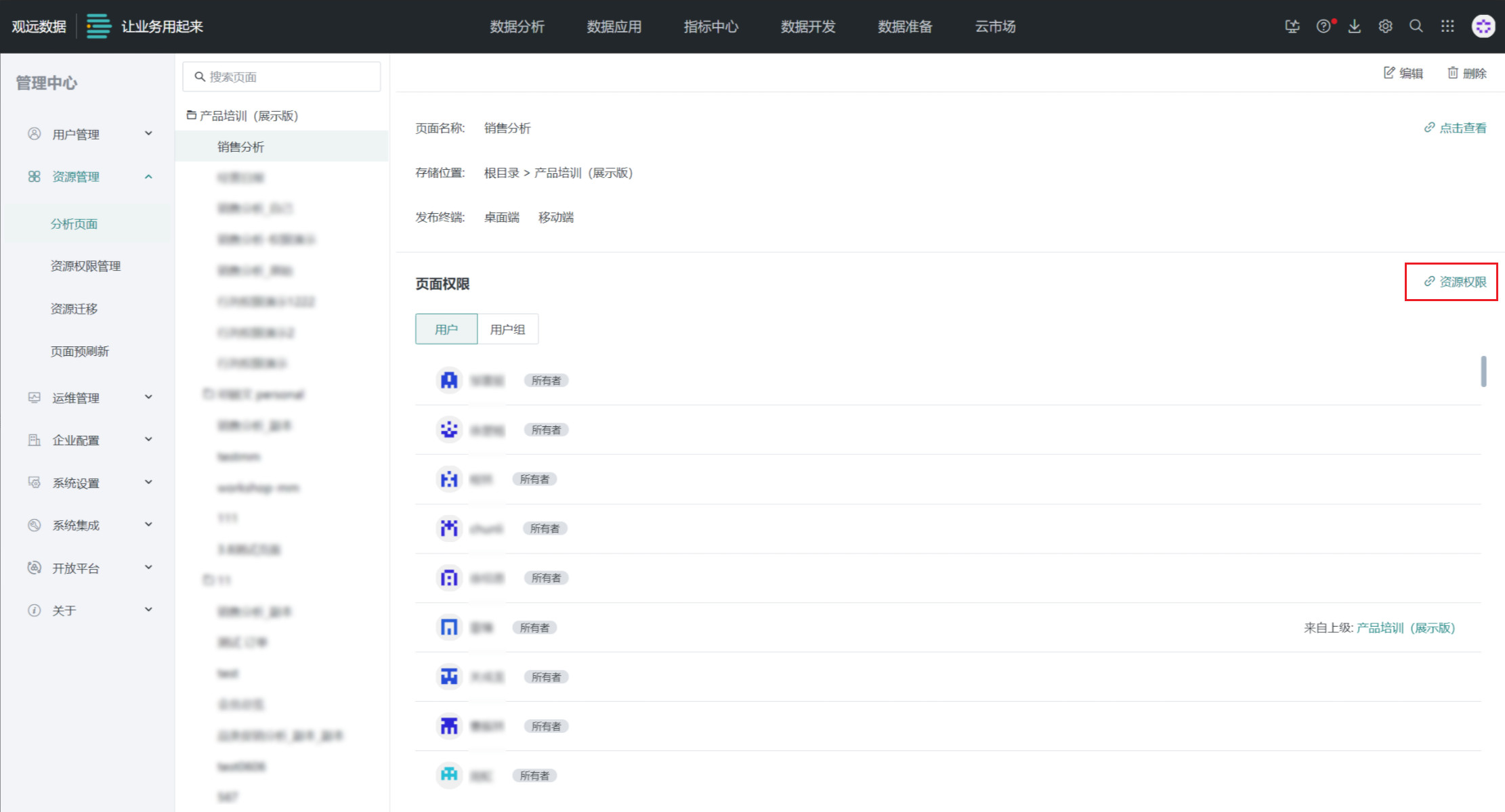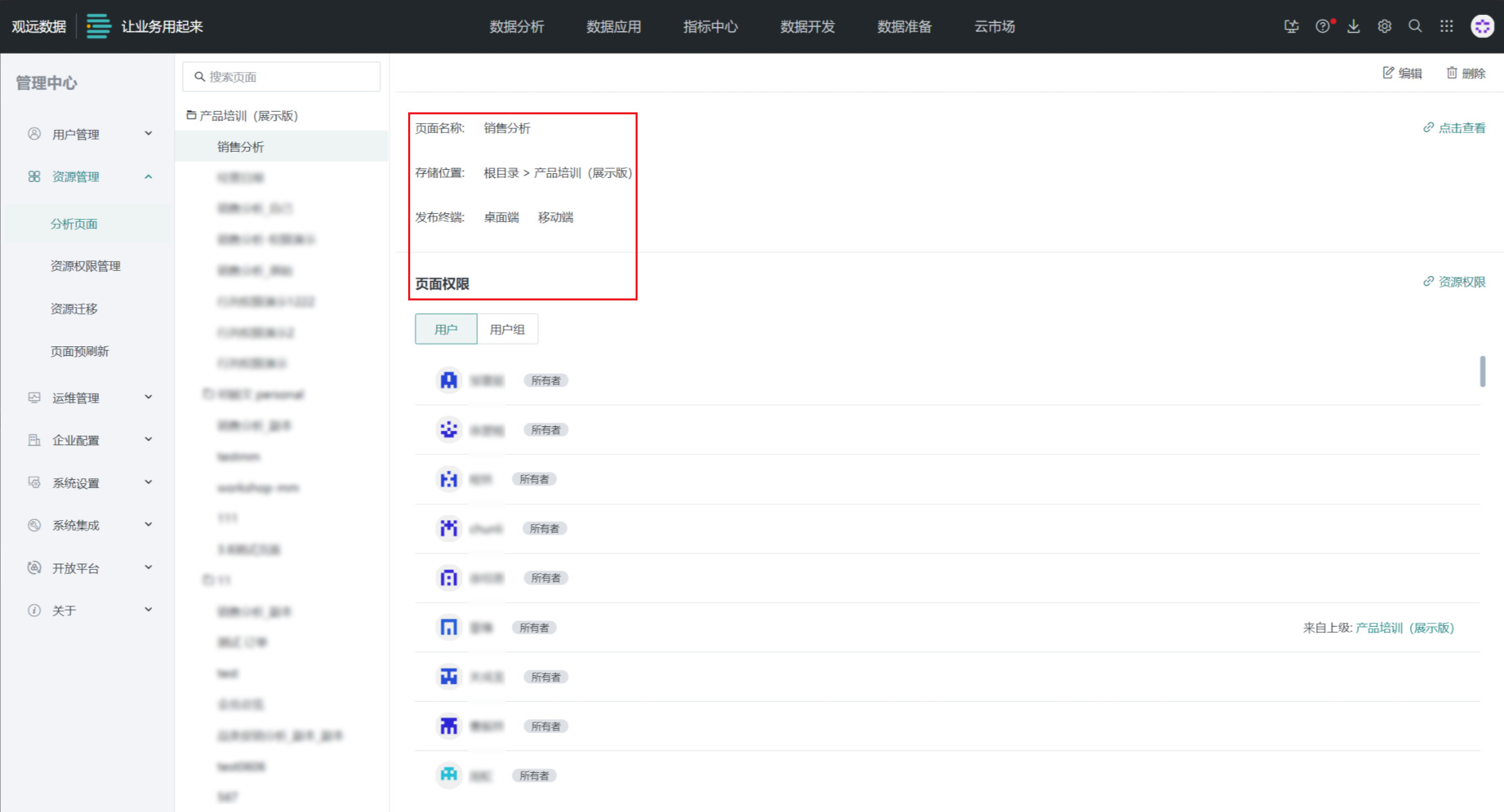 分析页面是指在完成了页面的制作与优化后,对页面进行权限管理的操作。