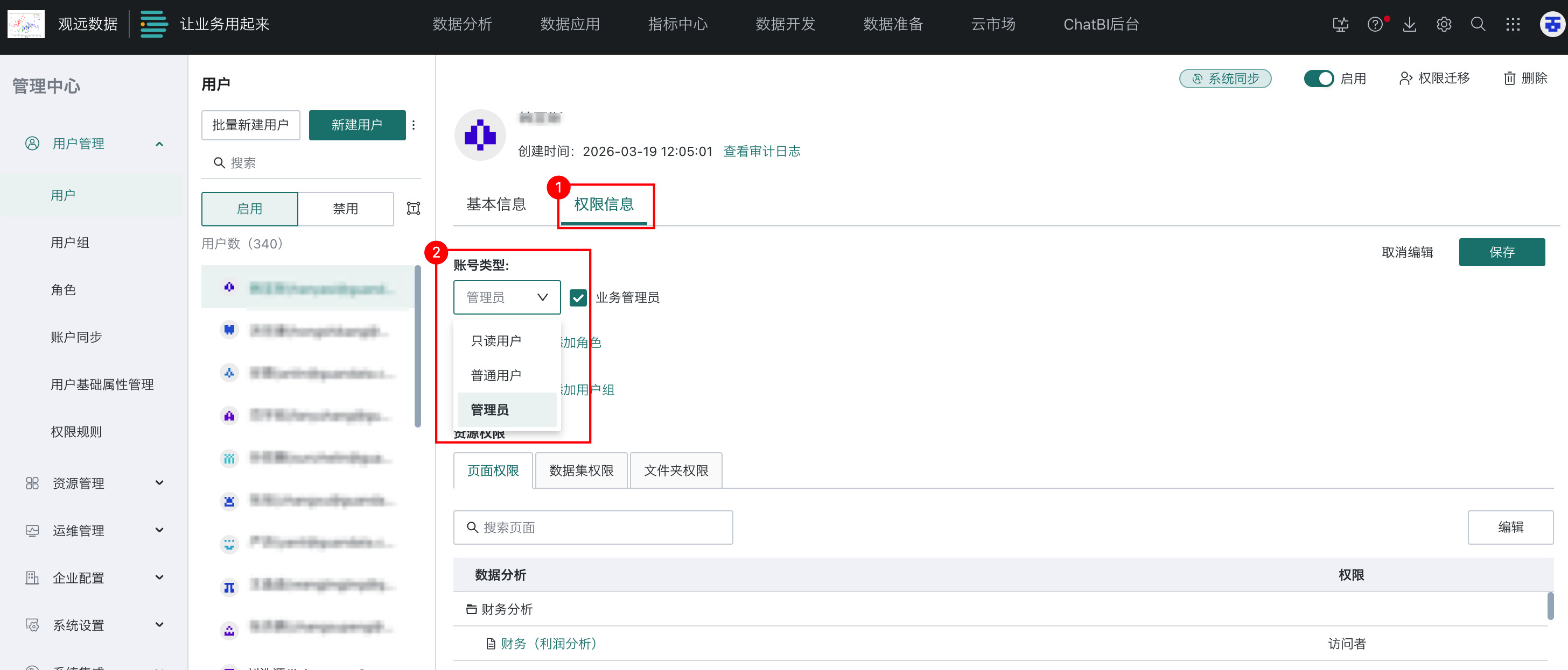 选择已有用户,在「权限信息」页面,编辑其「账号类型」为管理员。