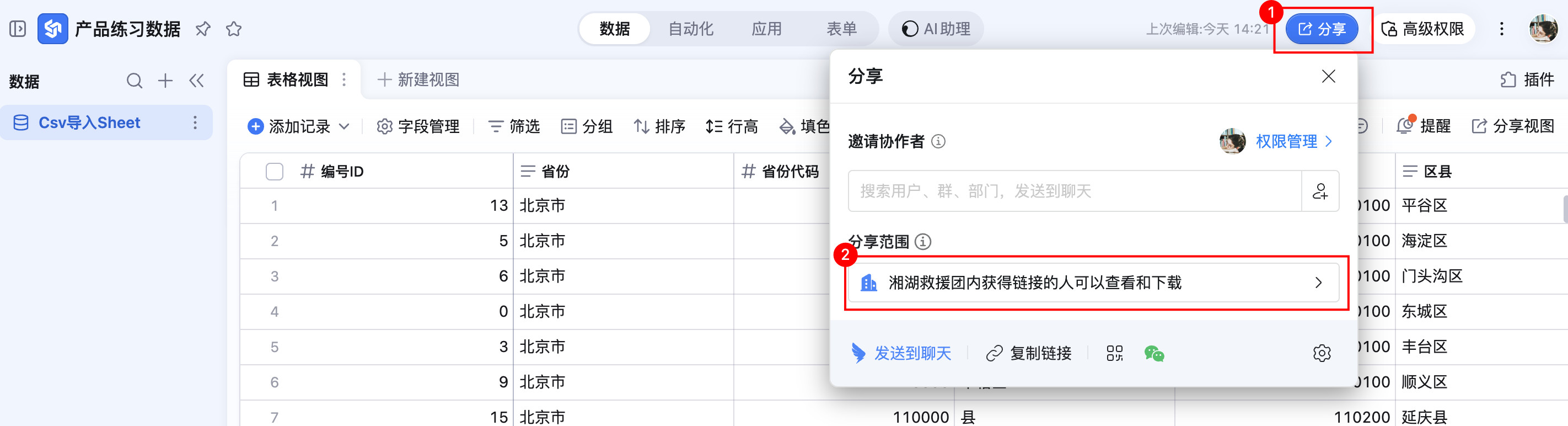 - 组织内获得链接的人可编辑(推荐选择,与 BI 平台对接时会进行组织权限校验);