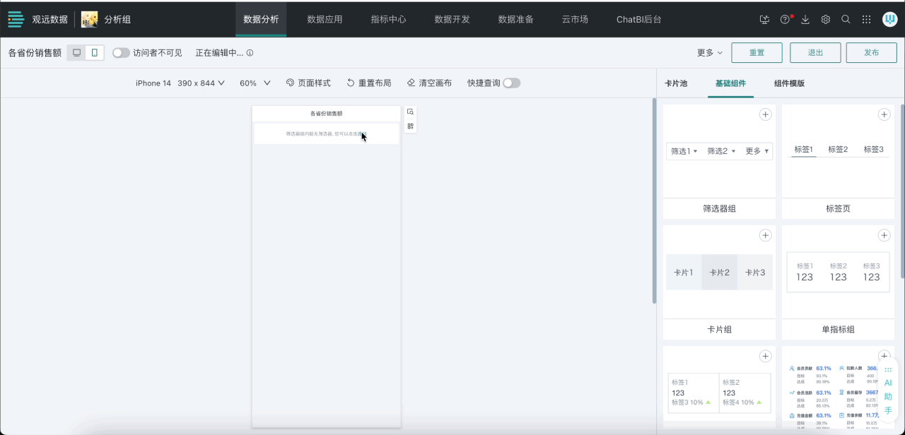 注意:本篇文档中移动端仅涉及基础组件相关的内容,更多有关卡片池、组件模板等移动端布局相关操作,详情请参阅移动端布局。