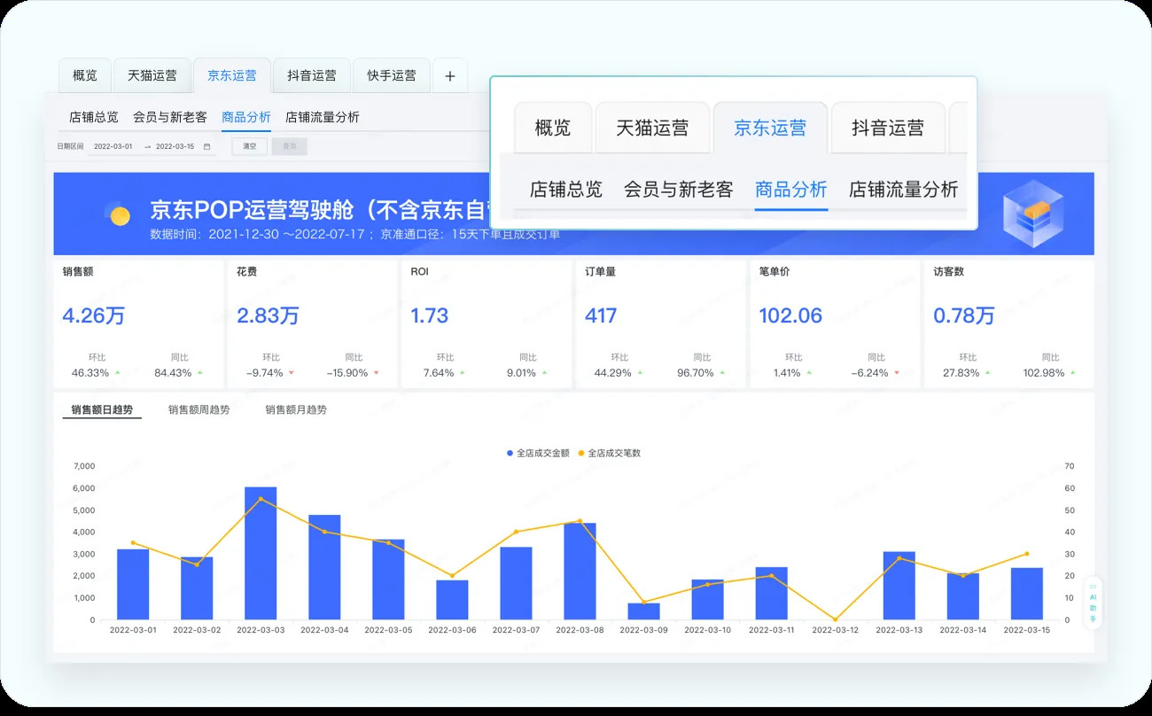 | 标签页 | 当需要在有限空间内展示多个相关但独立的数据视图时 | 不同业务部门的数据分析、同一指标的不同时间维度对比 |