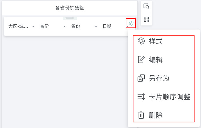 | 另存为 | 将该标签页另存一份至本仪表板页面或者其它您有权限的仪表板页面。 |