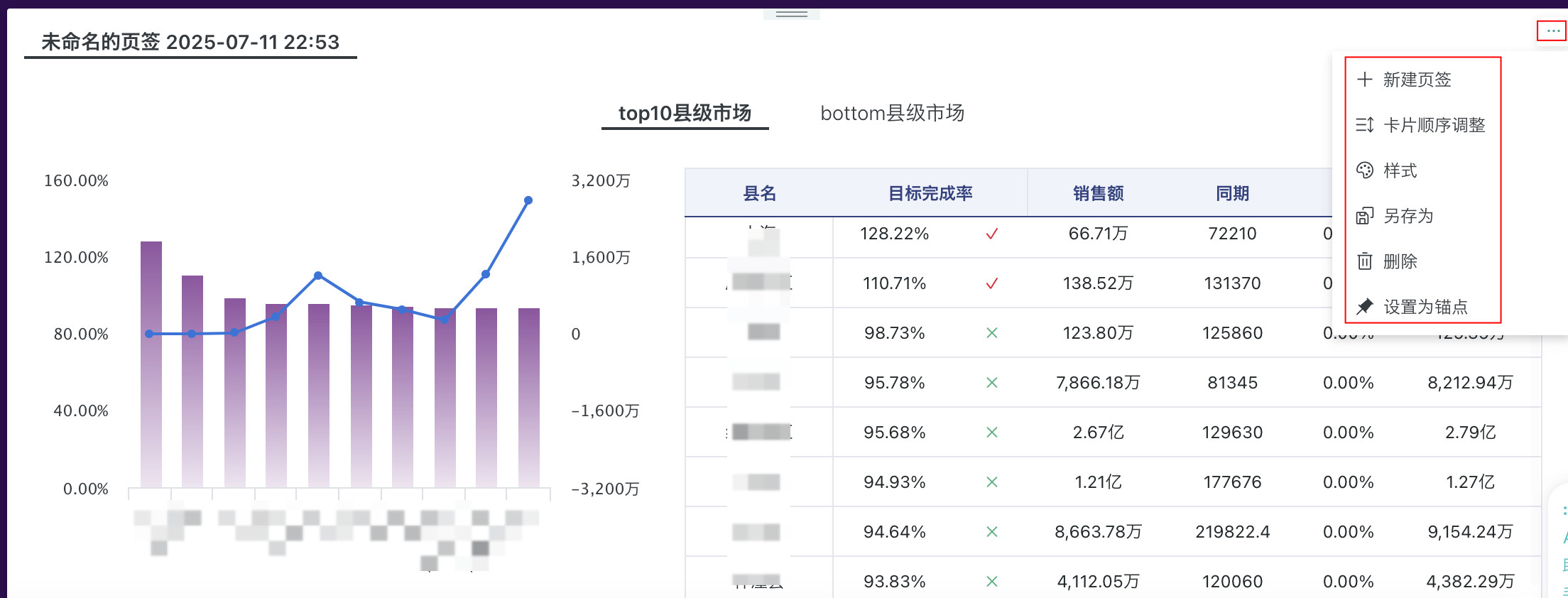 点击标签页右上角的「...」按钮,可对标签页整体进行布局优化、样式调整等操作。