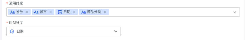 适用维度中有时间字段时,可被选为时间维度,用于后续进行时间相关的衍生配置。