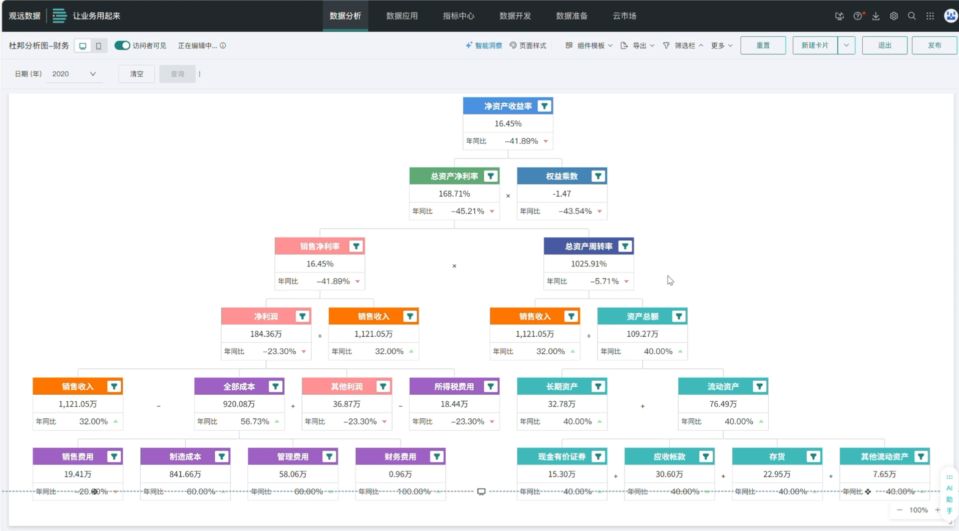 杜邦分析图易用性提升:杜邦分析图的节点支持展开和折叠,同时支持编辑页设置的展开收起为默认效果,详见杜邦分析图。
