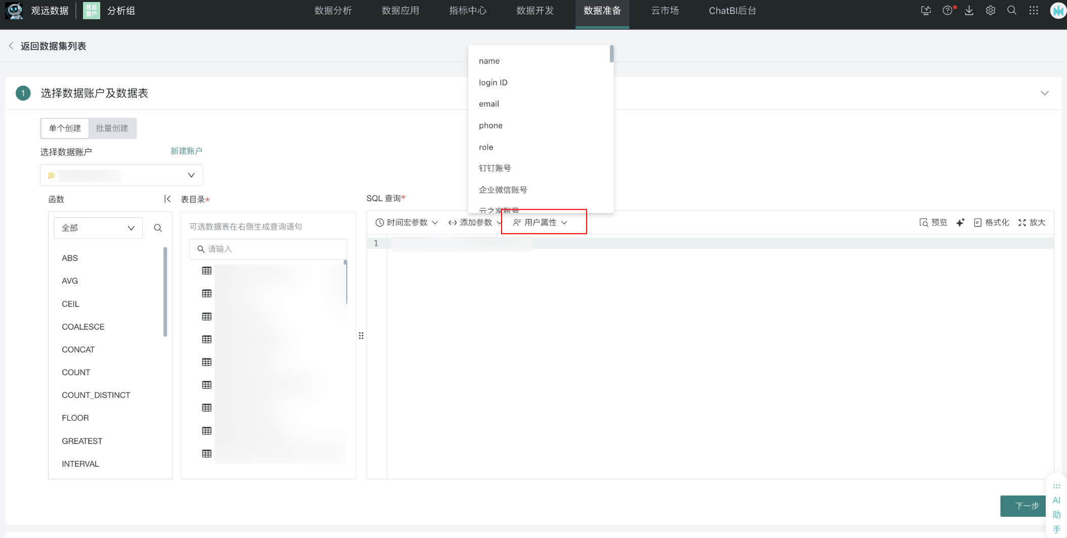 直连数据库支持使用用户属性参数取数:直连数据库时支持引用「用户属性」(例如角色、部门)来控制取数范围,详见标准数据库连接指南。