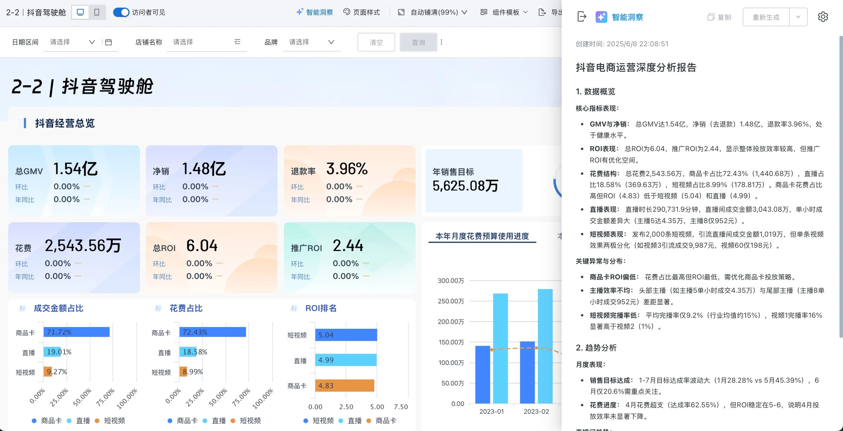 卡片智能洞察:通过 AI 自动解析仪表板各模块的数据,提供可视化之外的深度洞察与可行动建议。相比传统的可视化图表,它让用户在查看数据的同时获得即时的分析解读与可行动指引,从而将数据分析与业务决策无缝衔接,显著提升分析效率与决策准确性,如何使用详见卡片智能洞察。