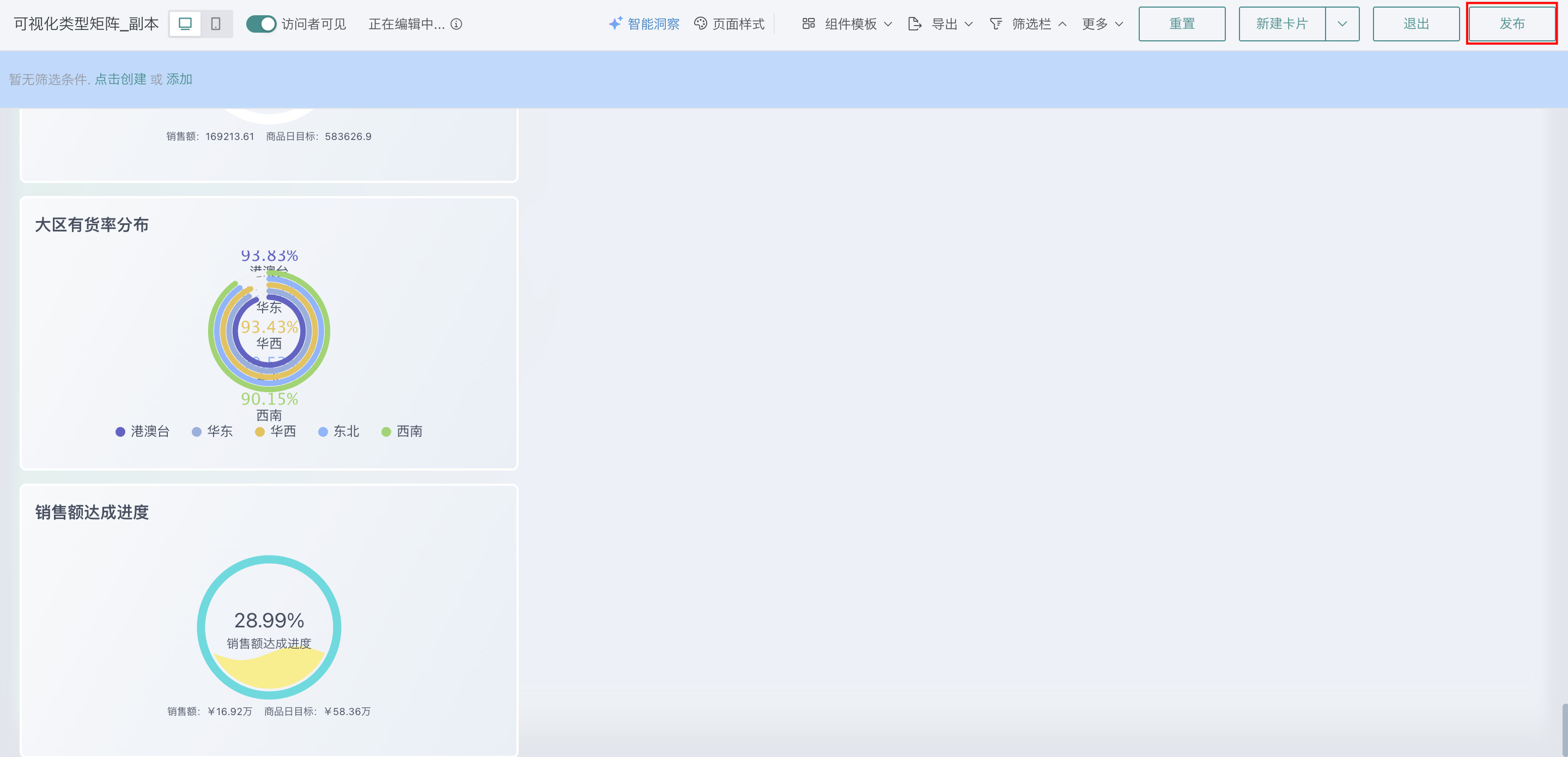 点击仪表板首页右上角「编辑」按钮,进入仪表板编辑页面。