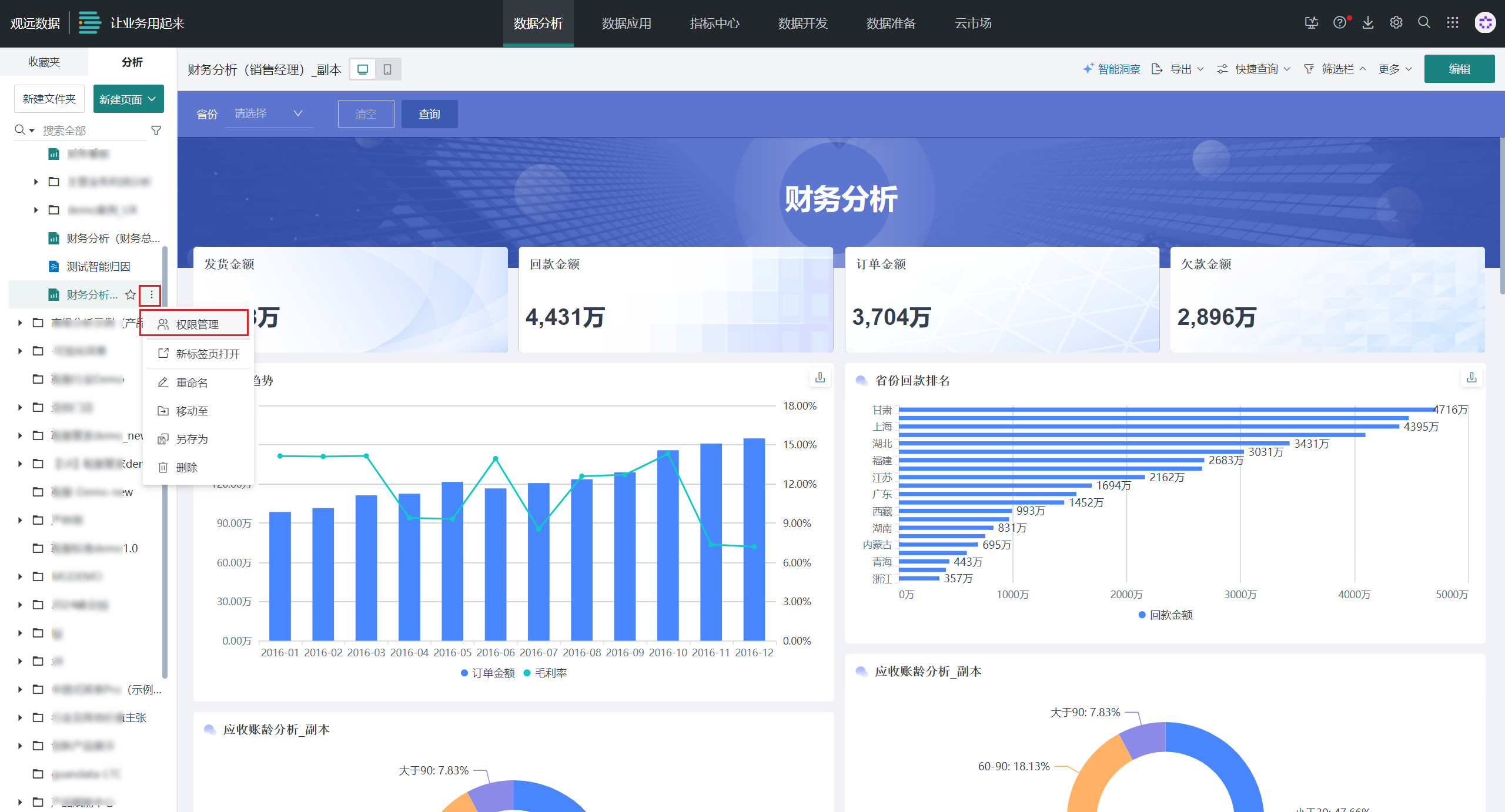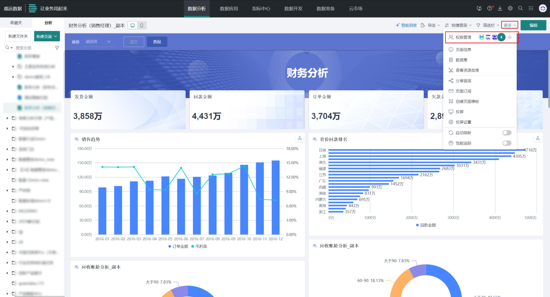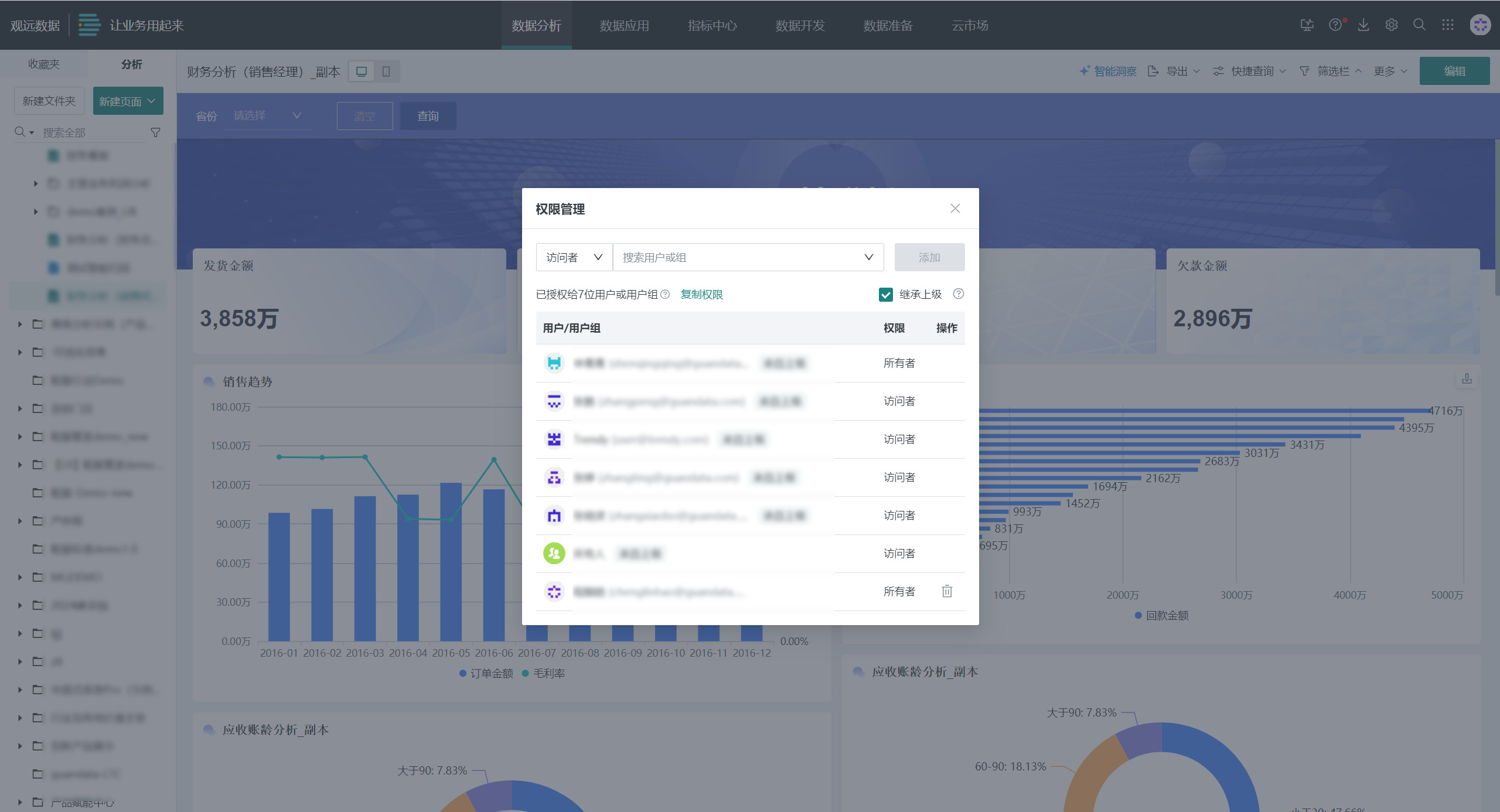 方法二:发布仪表板后,在分析界面中点击「权限管理」,可进行权限配置。