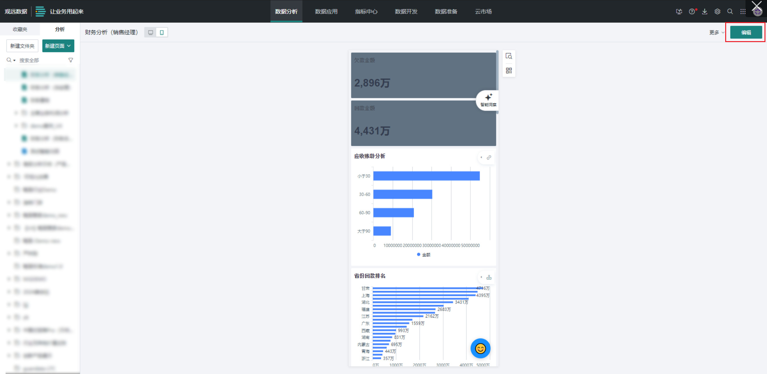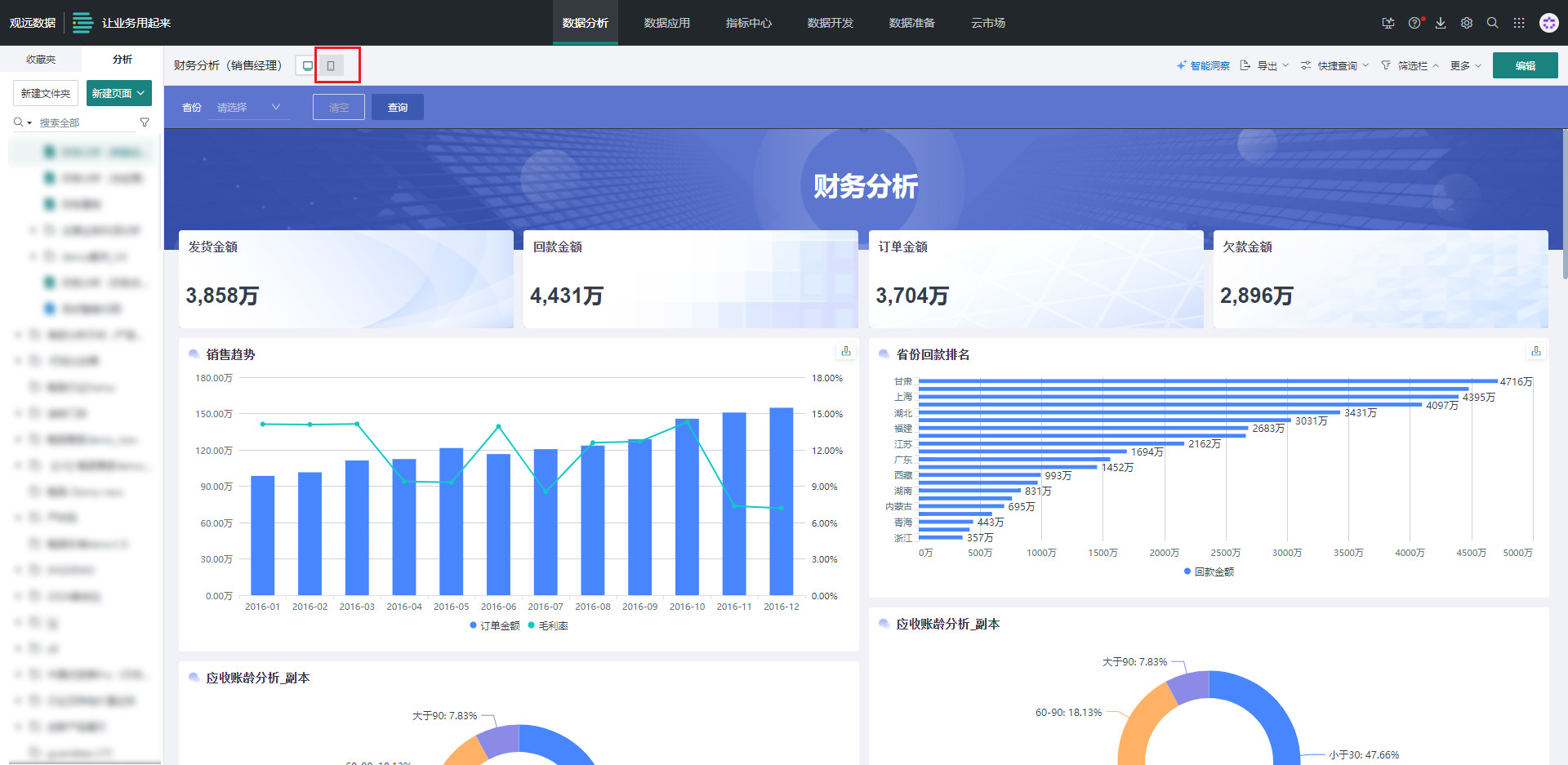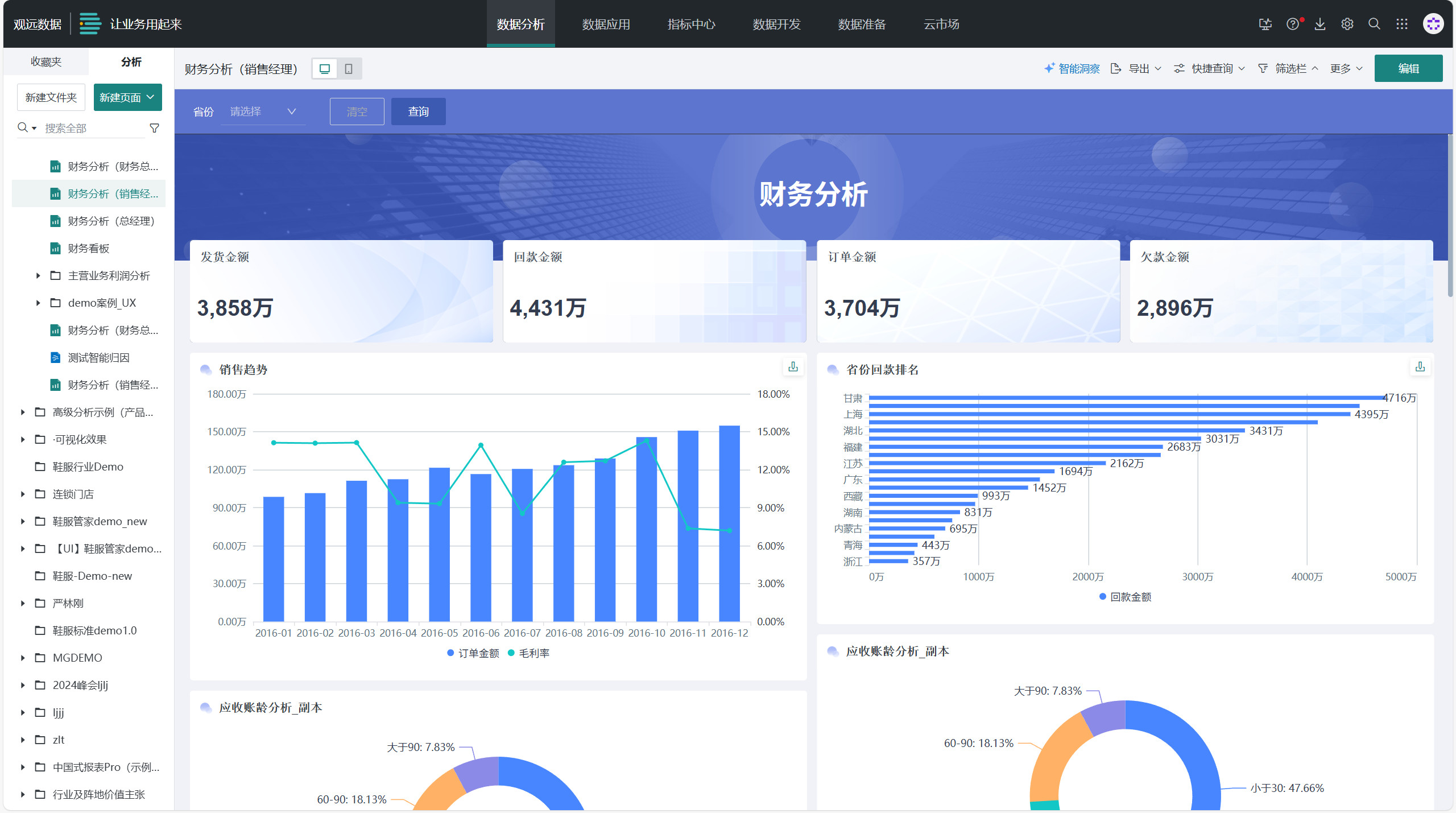 在观远BI平台PC端,点击「数据分析」模块,找到并点击目标文件夹中的仪表板即可查看完整效果。