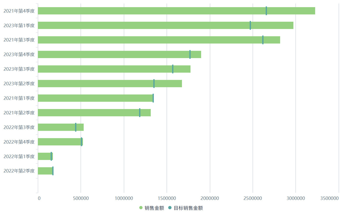配置完成后可看到图表根据销售金额降序排列。