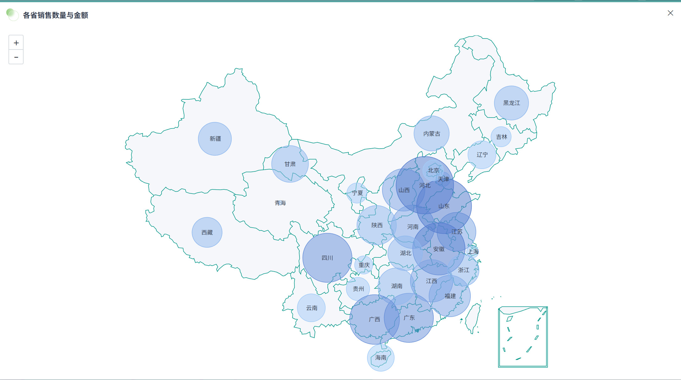 气泡行政地图适用于需要在地理位置上展示两个或多个相关数据维度的分析场景。