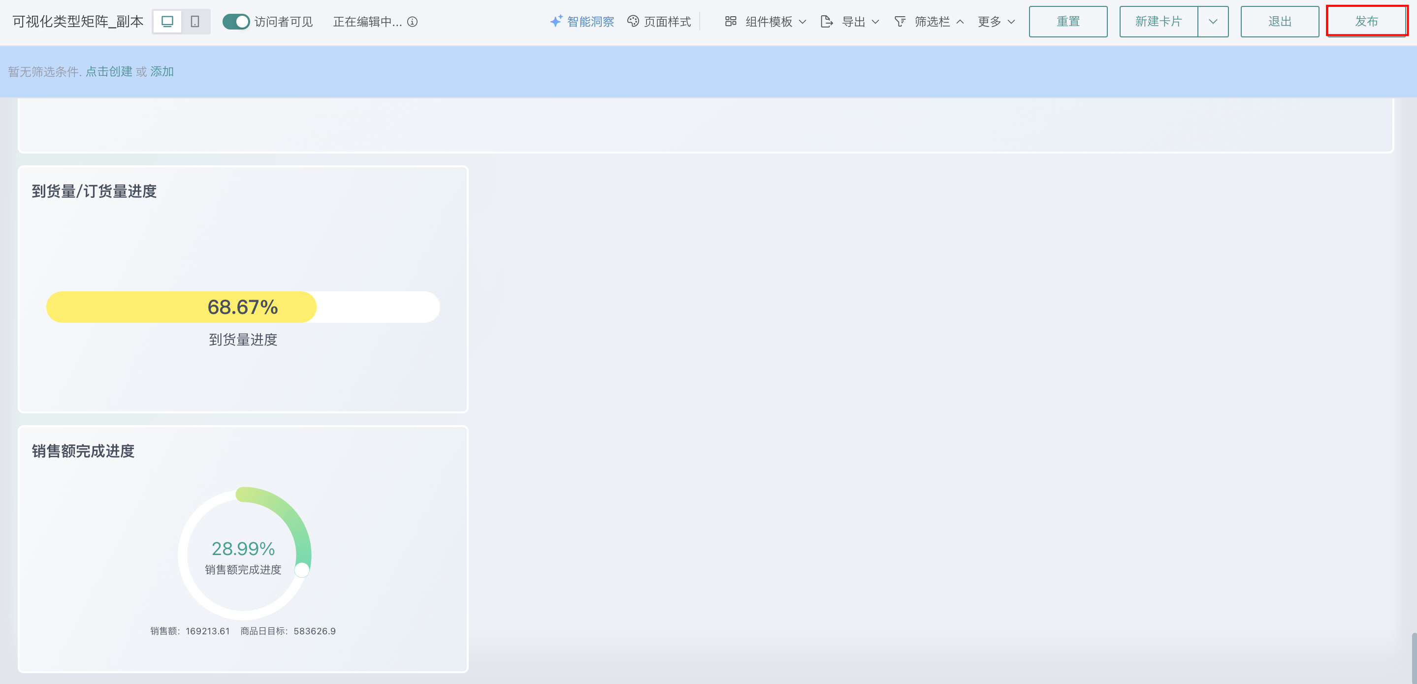 点击仪表板首页右上角「编辑」按钮,进入仪表板编辑页面。