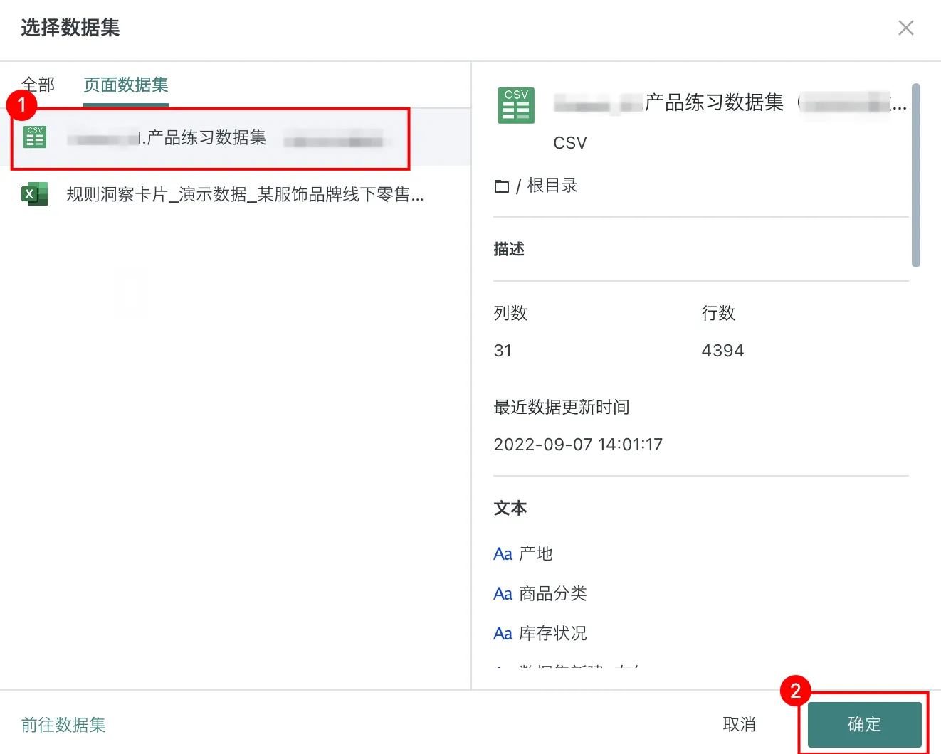 若需要切换分析数据集,可点击页面左上角「切换数据集」按钮。