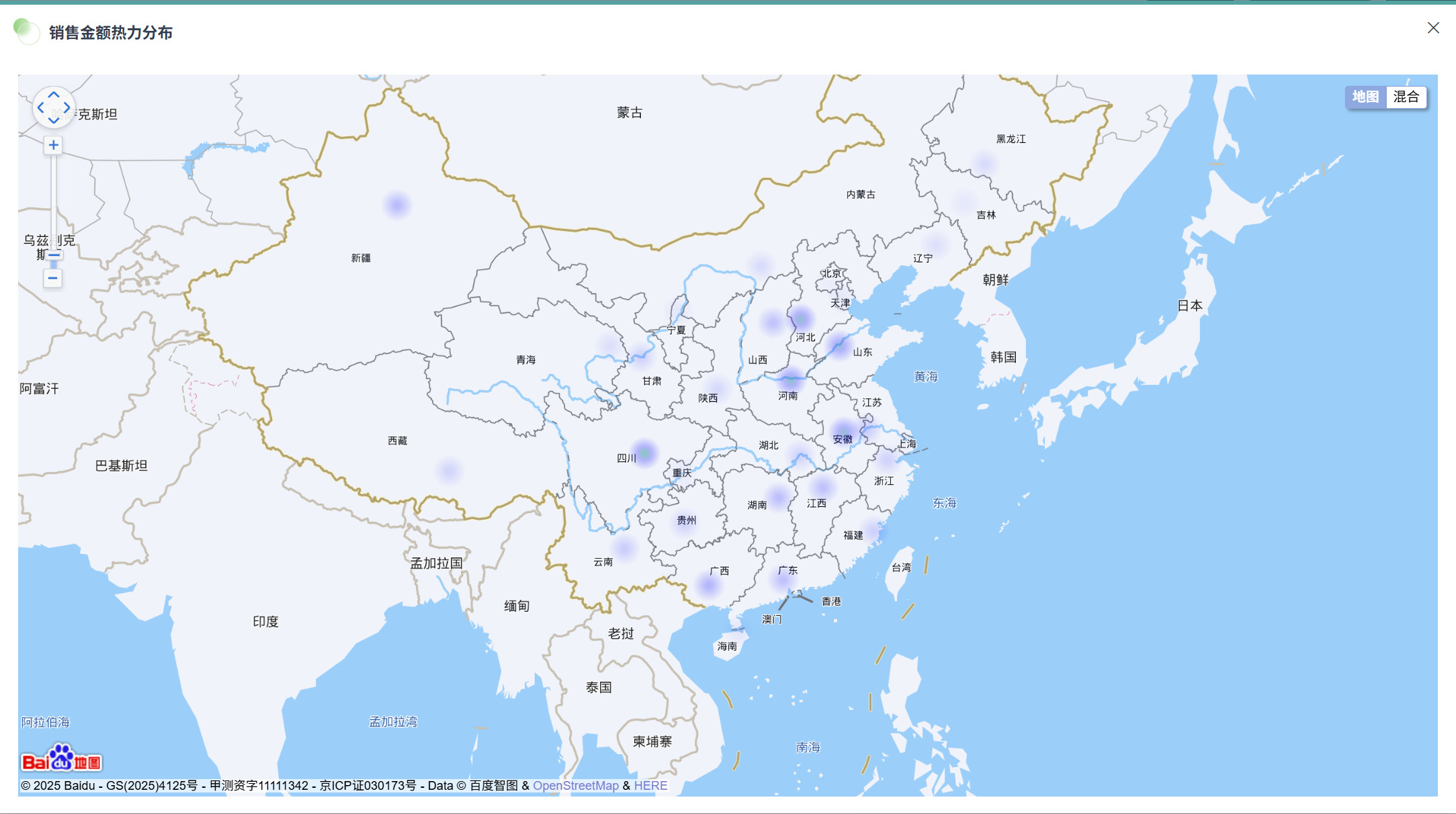 热力地图是一种通过颜色渐变来直观展示地理数据密度和分布情况的可视化图表。这种图表将地理区域与数值数据结合,使用不同深浅或色调的颜色来表示数据值的高低,形成类似热力分布的视觉效果,能够快速识别数据的聚集区域和分布模式。