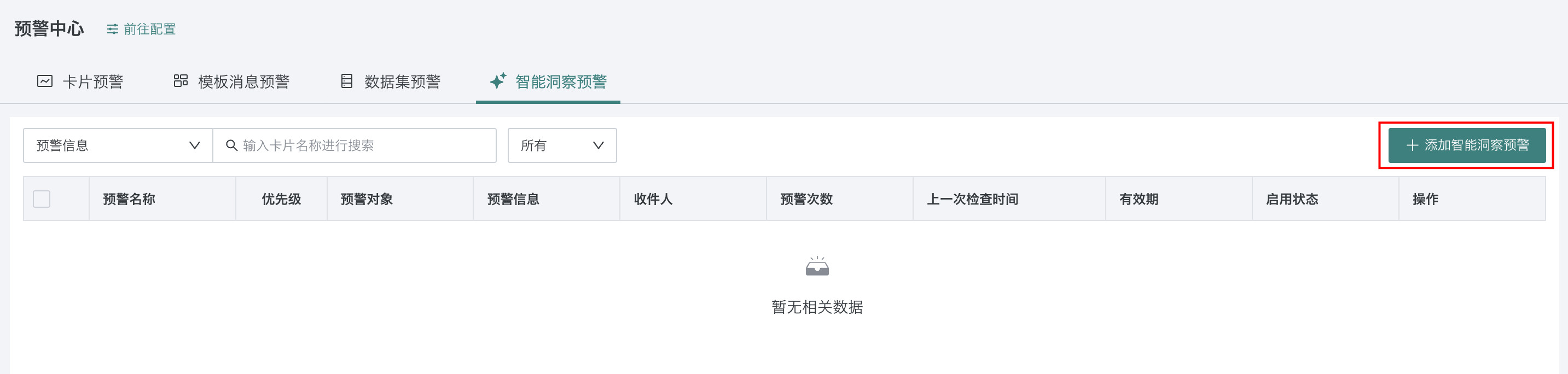 点击右上角「添加智能洞察预警」,即可进入「智能洞察预警」的配置页面。
