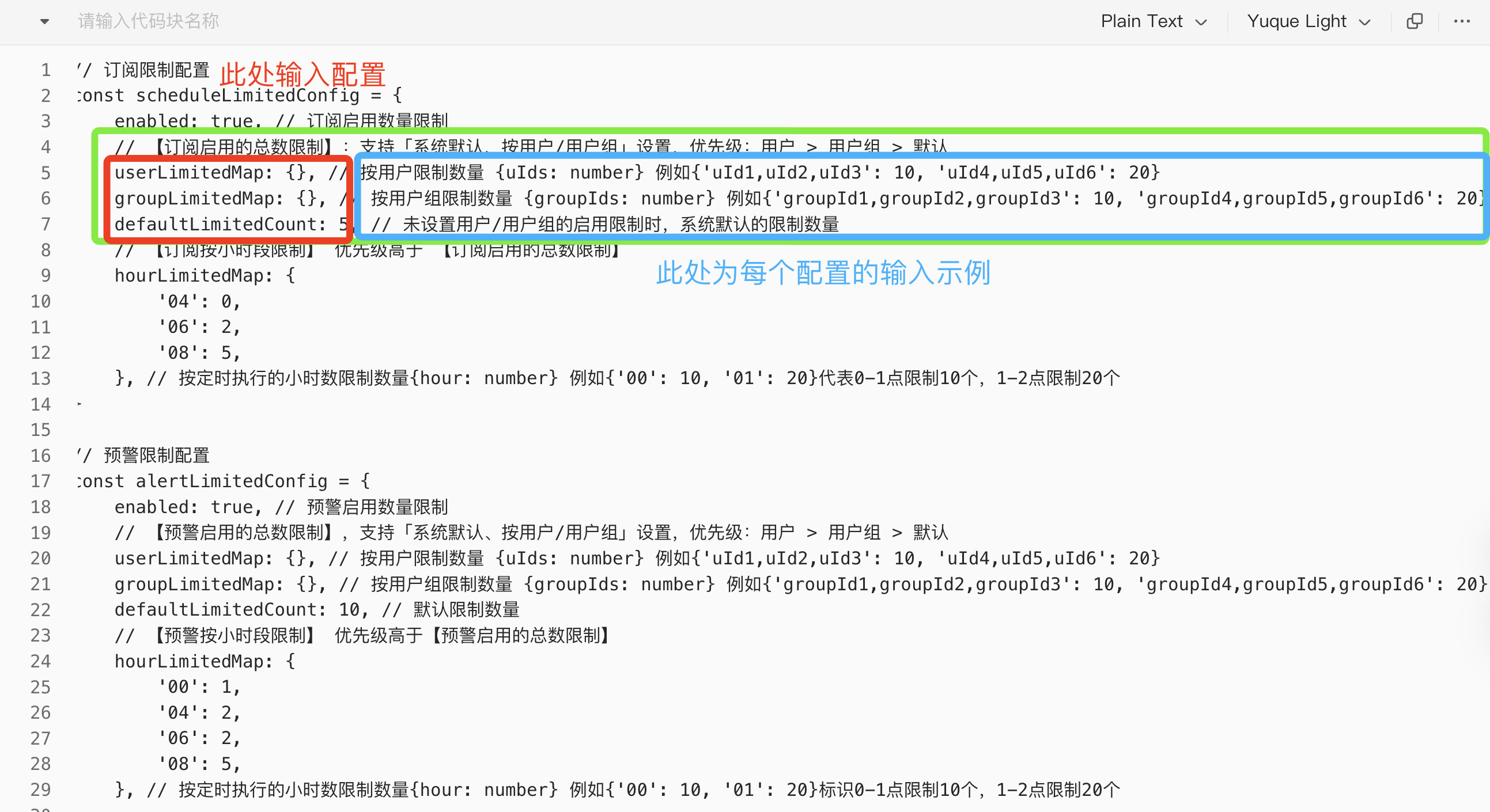 - 按照实际的管理诉求在对应配置项中分别填入订阅、预警的限制。