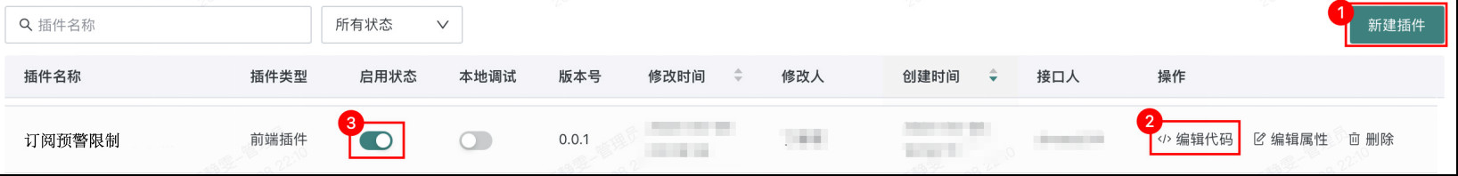 - 点击右上角「新建插件」,配置完成插件基础信息后点击「确定」,完成插件新建。