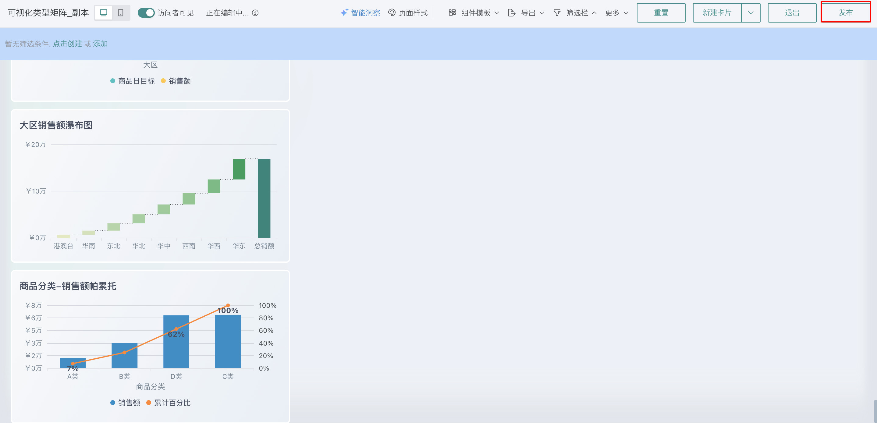 移动端图表需要切换至移动端布局单独添加卡片,详细操作可参考:移动端布局。