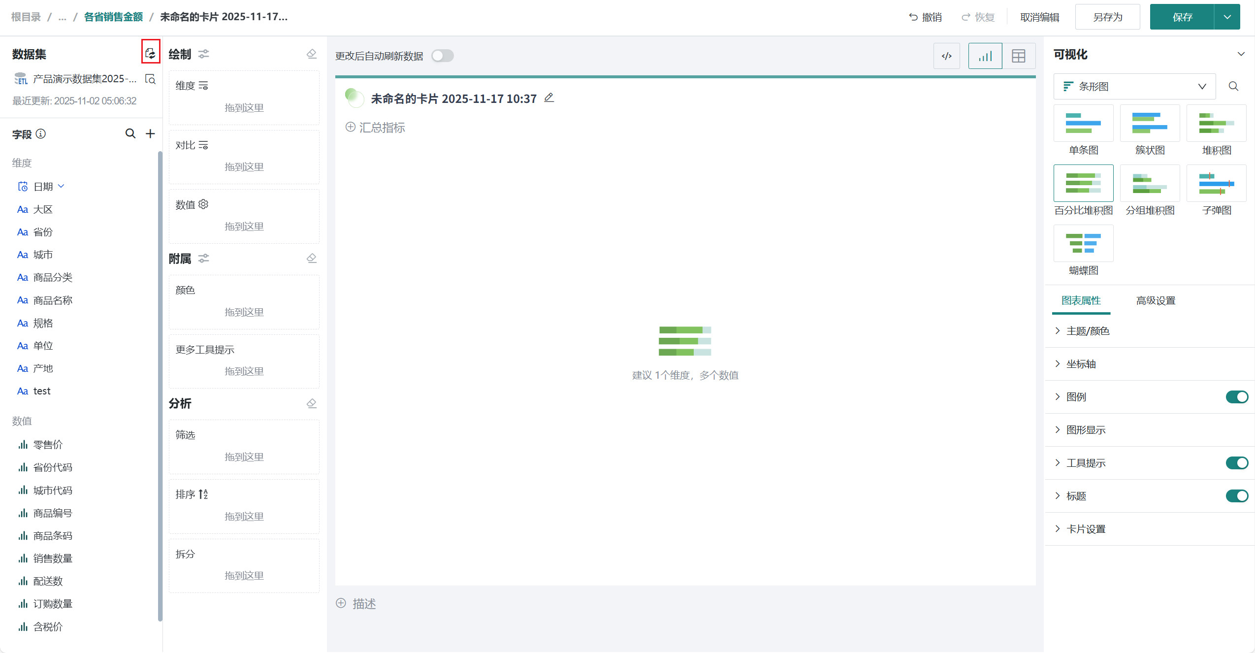 若需要切换分析数据集,可点击页面左上角「切换数据集」按钮。