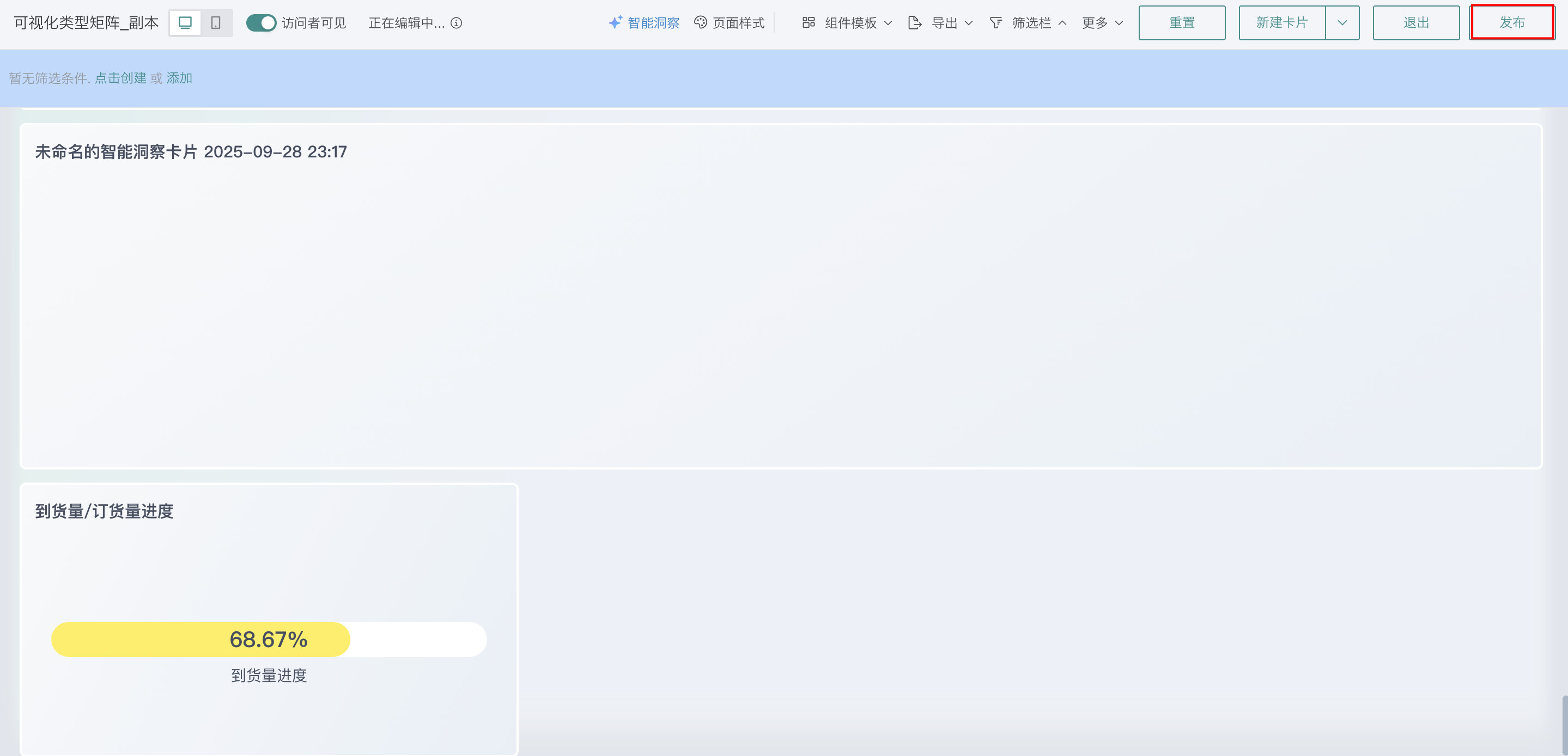 点击仪表板首页右上角「编辑」按钮,进入仪表板编辑页面。
