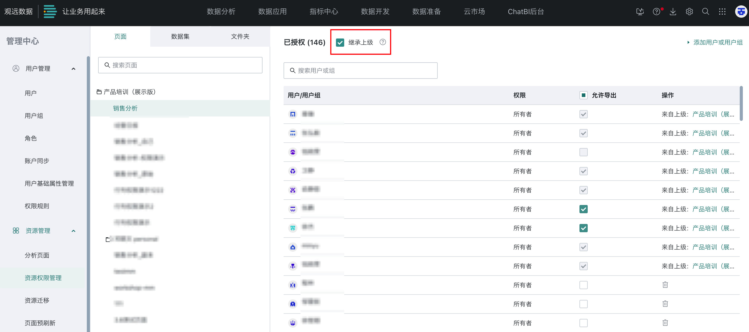 - 使用操作:即使用该文件夹,包括在当前文件夹里新建资源(仪表板、数据集等),其他资源移动至、另存为到该文件夹。