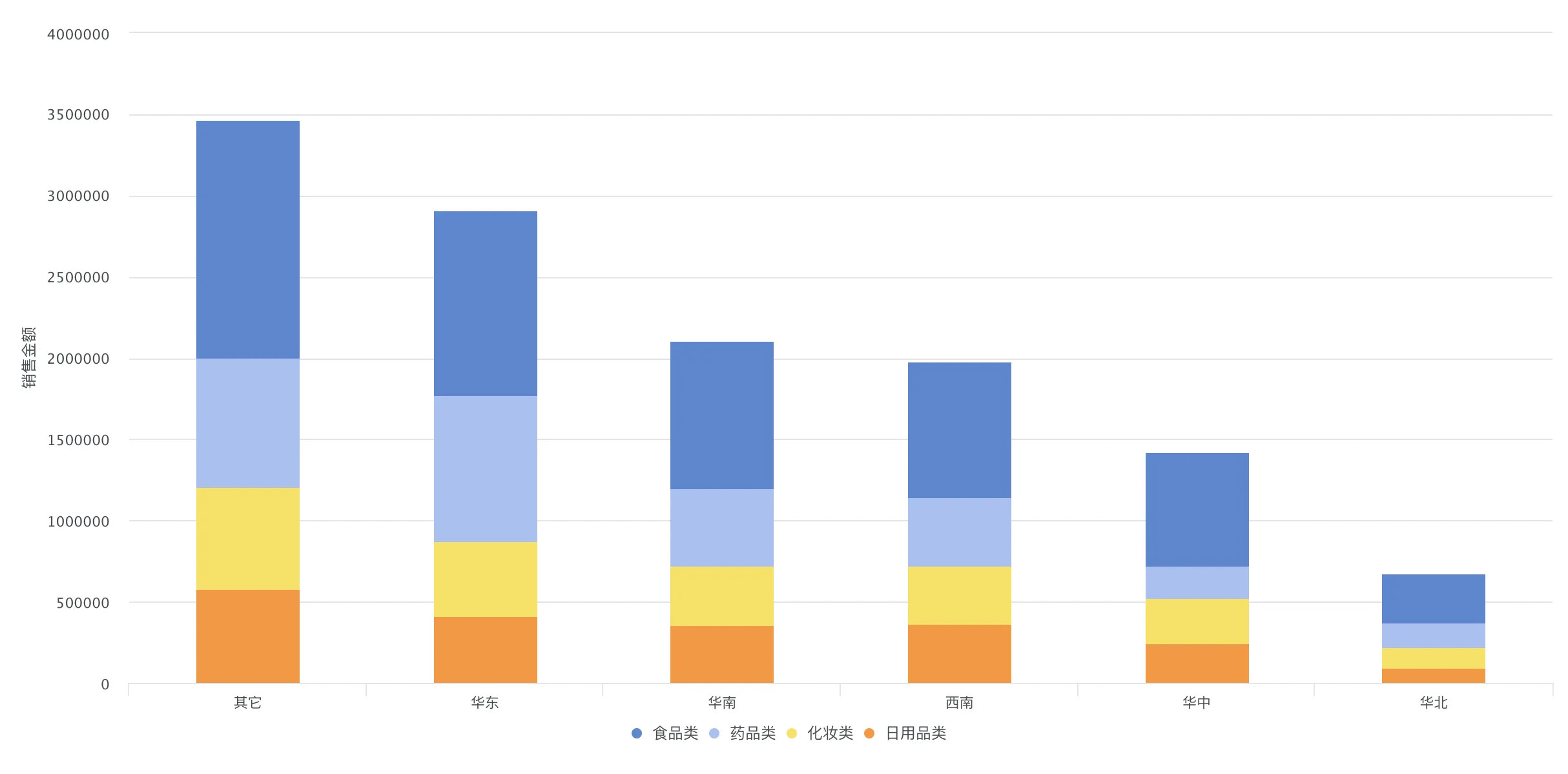 例如:比较不同产品类型在不同地区的销售额情况,如图所示: