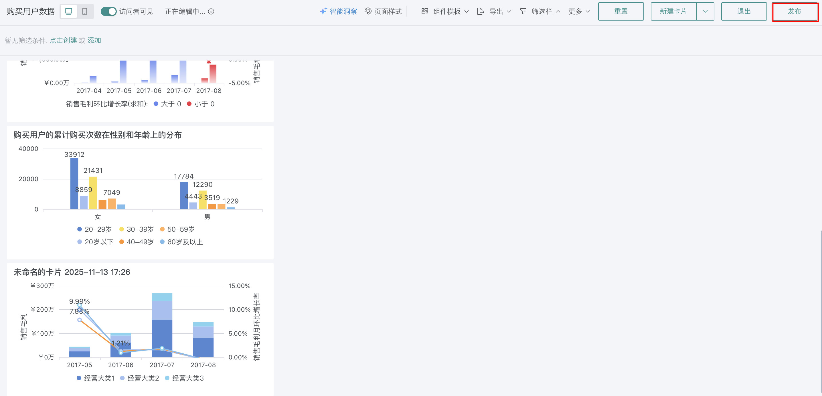 点击仪表板首页右上角「编辑」按钮,进入仪表板编辑页面。
