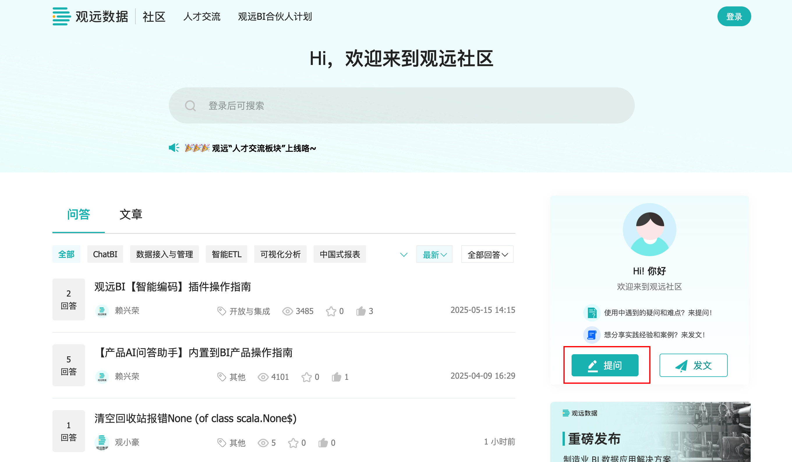若有关于 BI 使用的其他疑问,可进入 观远社区 进行提问,将会有相关人员为您解答。