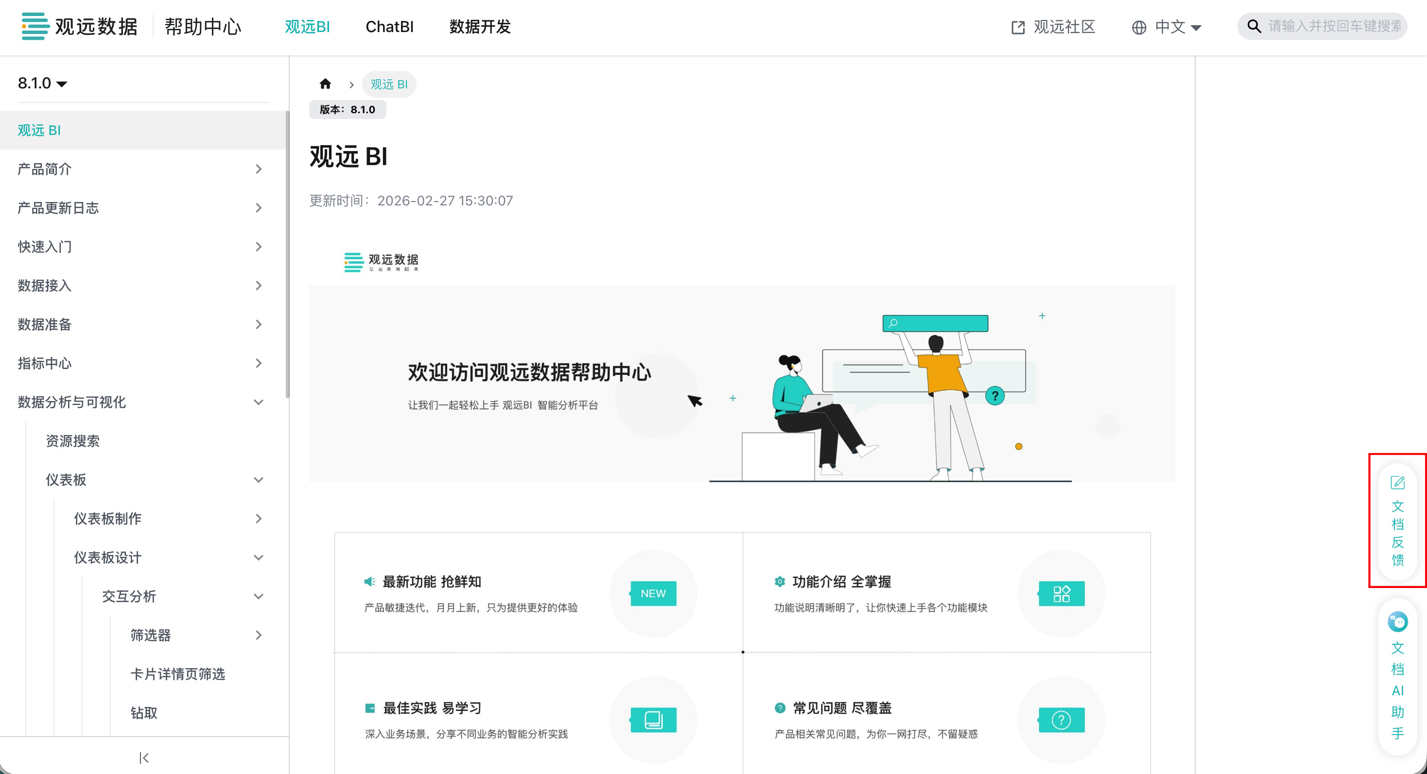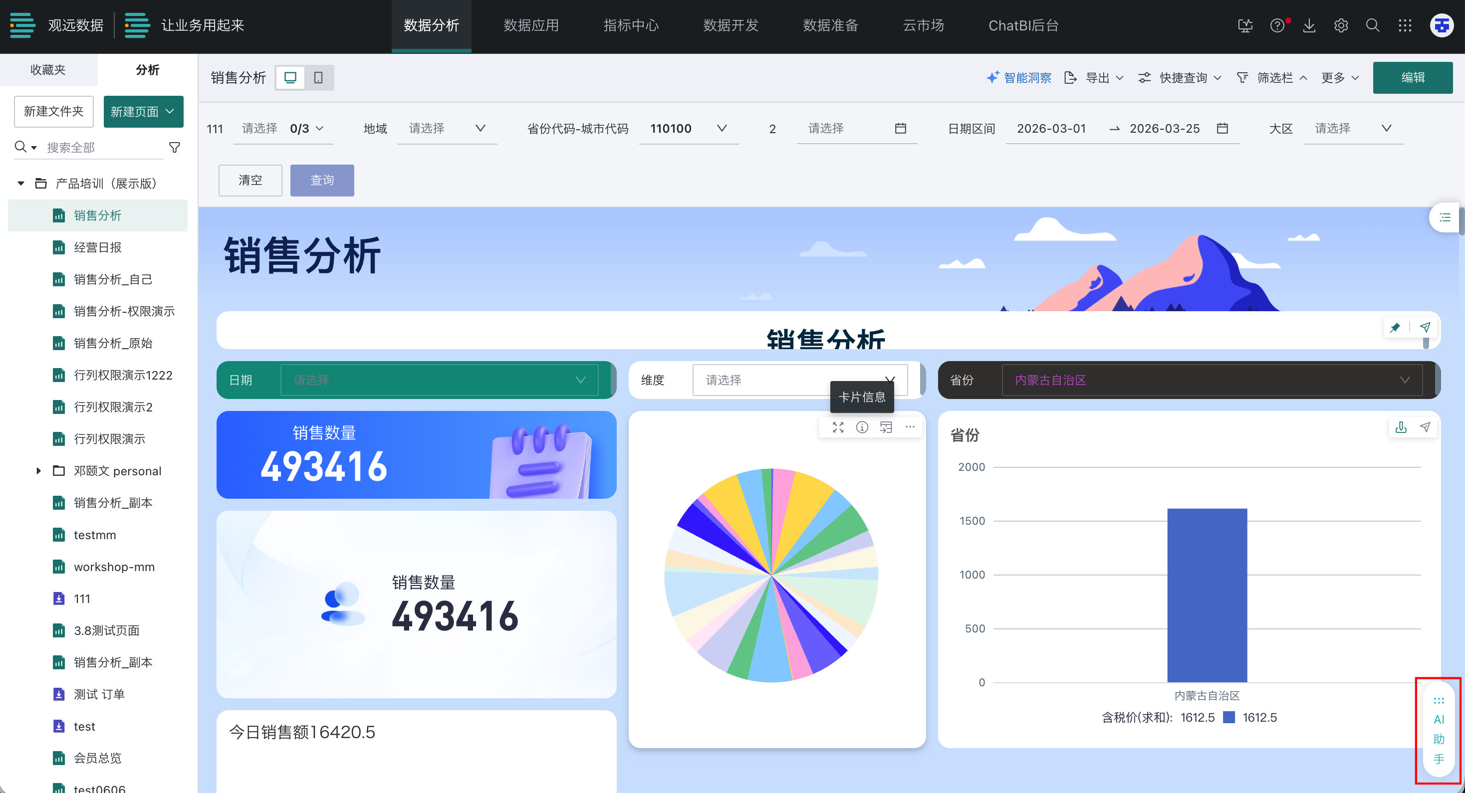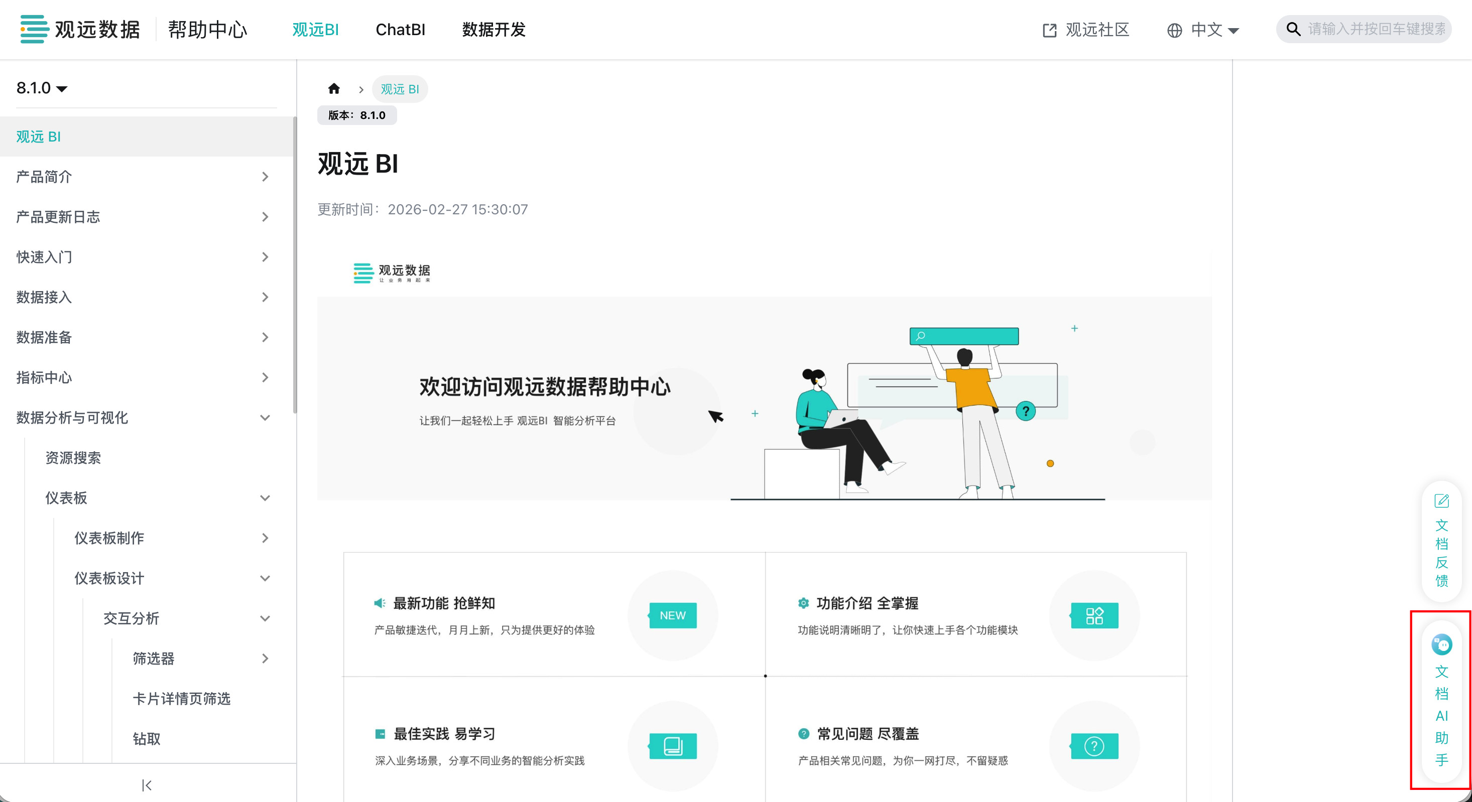 产品使用助手:在 BI 产品界面中,随时打开 AI 助手咨询产品使用相关问题。