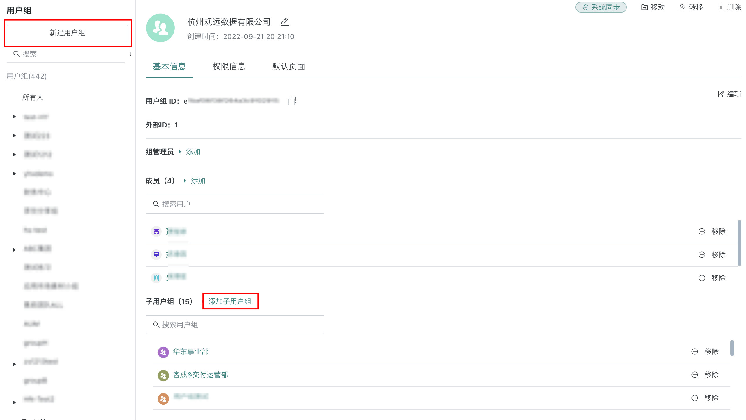 输入用户组名称与所属用户组后点击「确定」,完成用户组新建。
