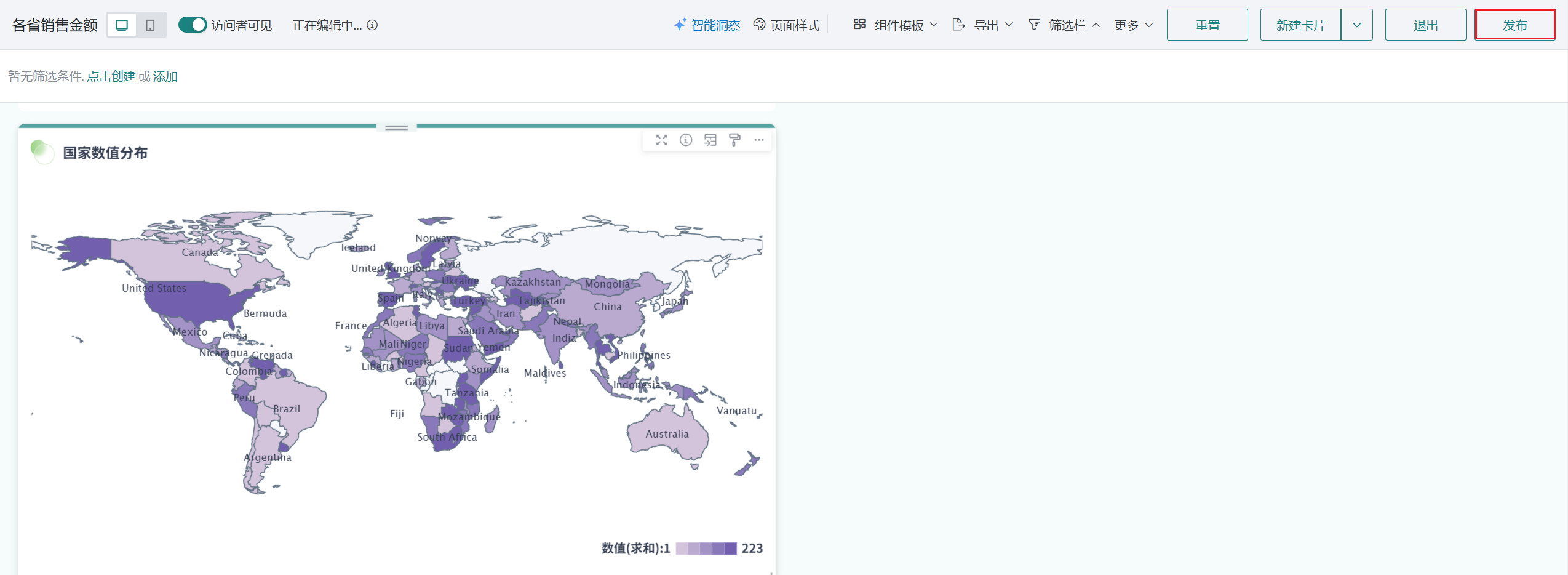 - 点击「发布」,将仪表板发布上线。