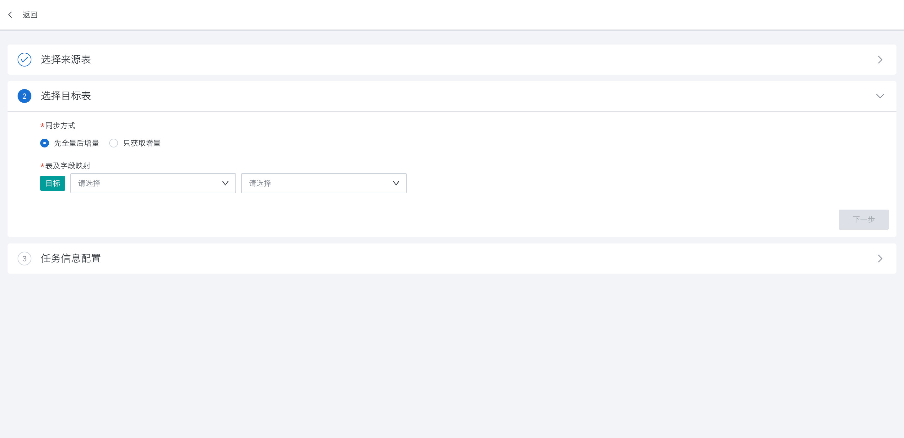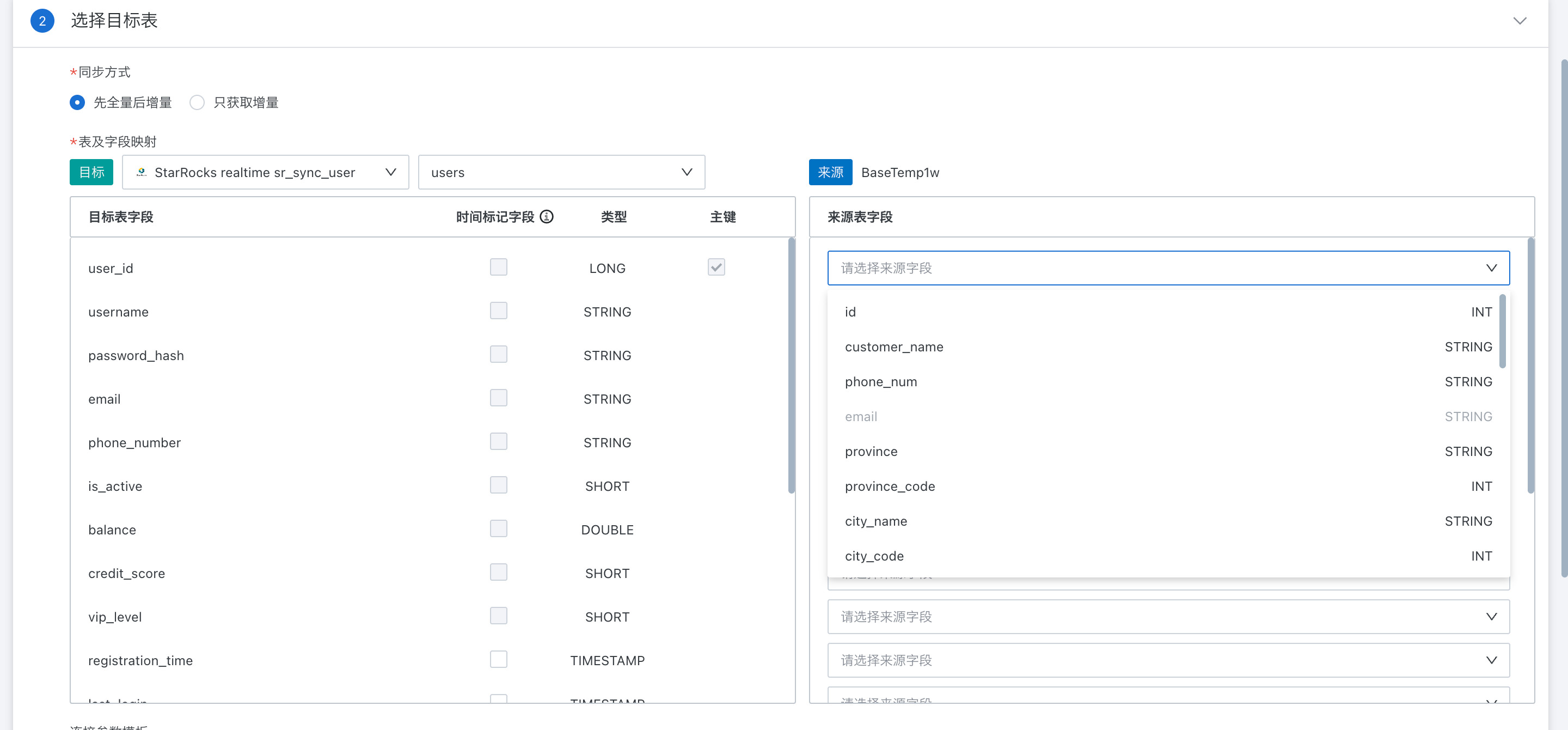 先对所有存量数据同步,然后持续同步新增变化。任务初次运行时,将完整运行全量同步+增量同步。