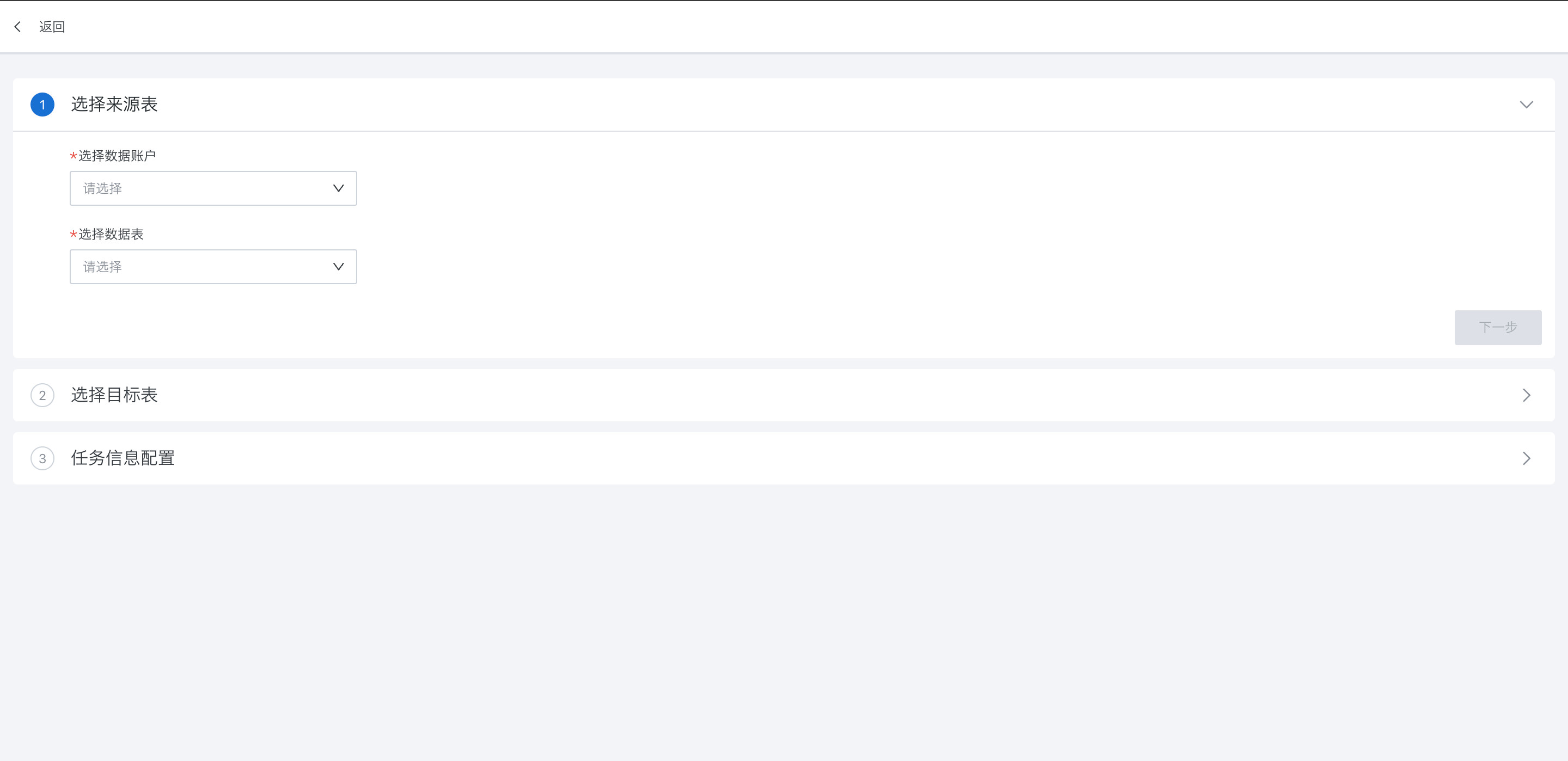 选择来源表的数据账户(需提前创建好数据账户)和表名