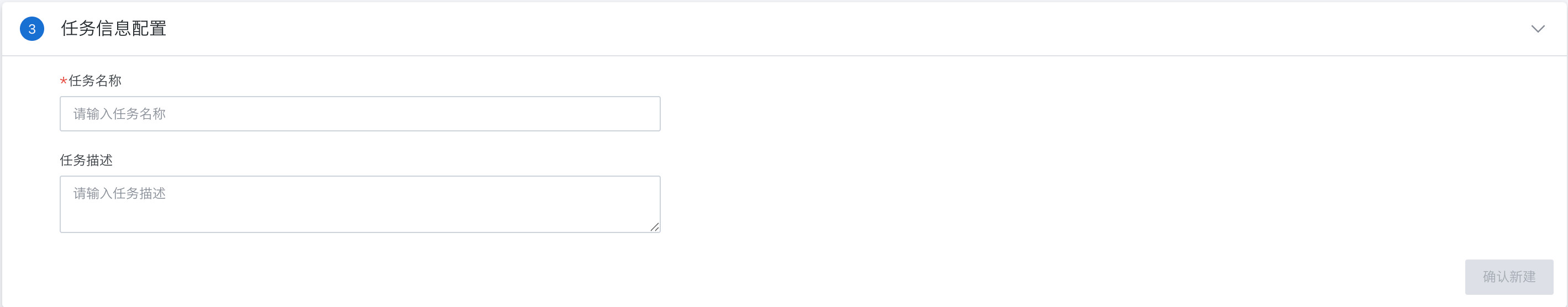 填写任务名称、任务描述,点击确认新建,任务创建成功。