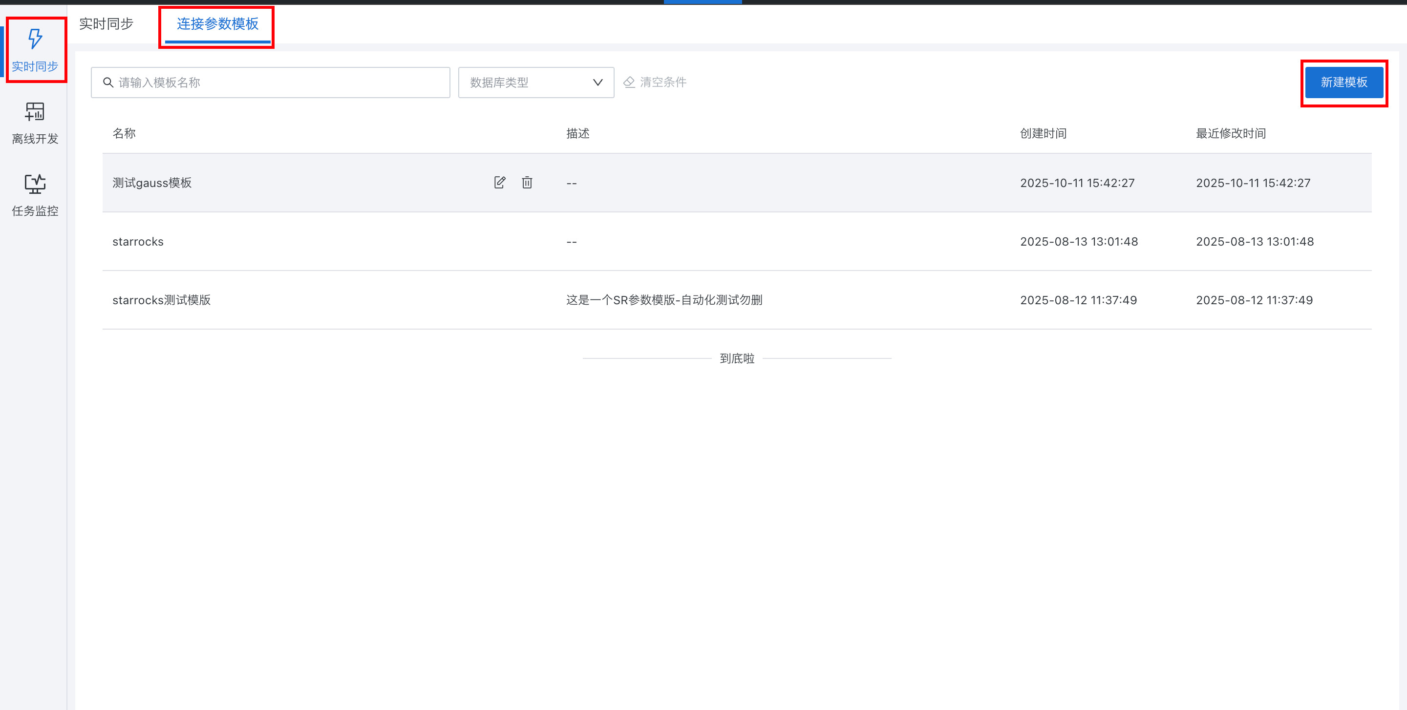 为确保实时同步任务正常运行,需要为目标数据库配置额外参数,通过连接参数模版进行配置。