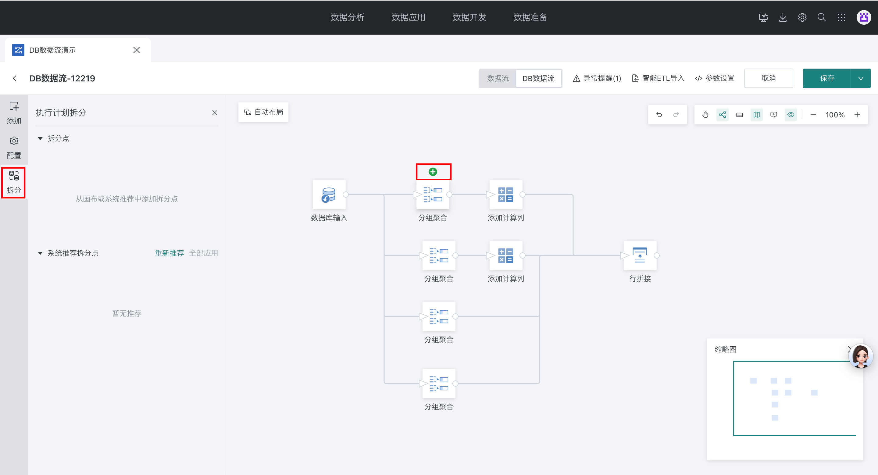 对于一些极端复杂的DB数据流,系统自动切分SQL后还是不满足数据库运行的条件,支持用户手动配置切分点